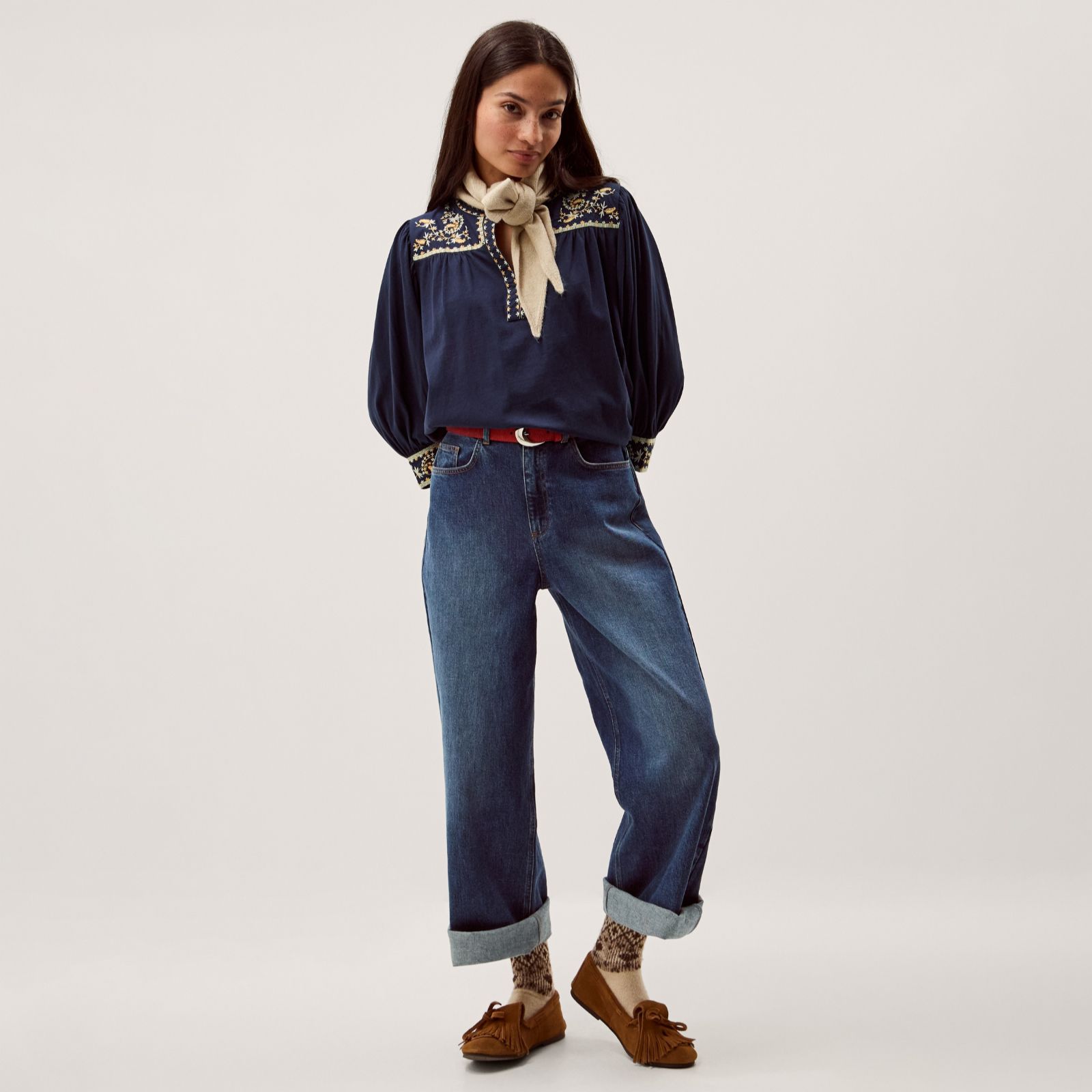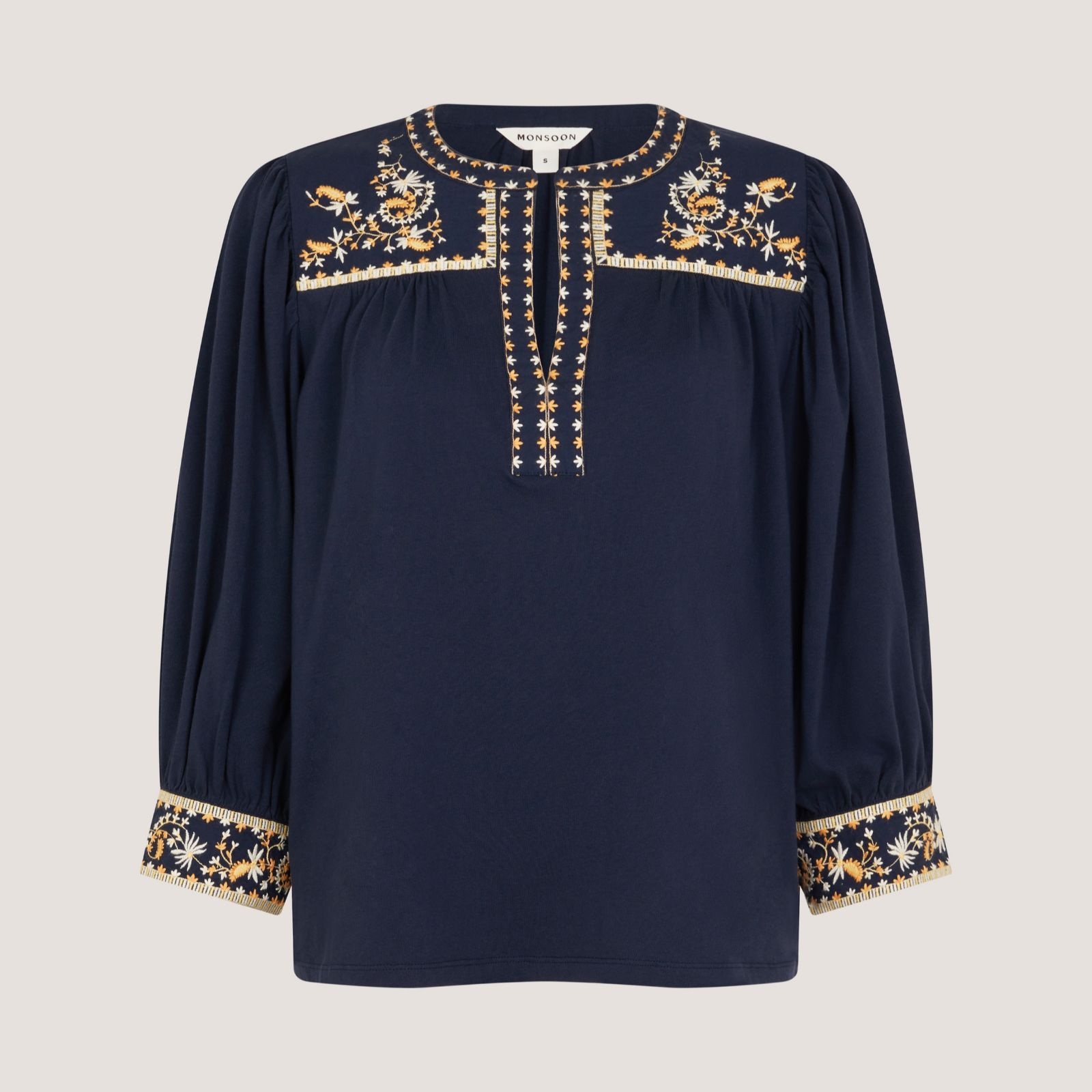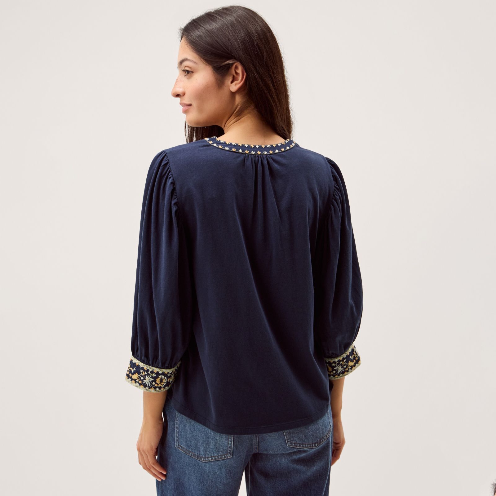 Turn over a new leaf with the Emi embroidered jersey blouse from Monsoon, where intricate leaf embroidery graces the collar, V-neckline and cuffs for a charming artisan touch. Its fitted silhouette and soft jersey make it a go-to for relaxed weekends, from market strolls to coffee catch-ups. Pair it with your favourite jeans and ankle boots for an effortlessly chic, everyday look.