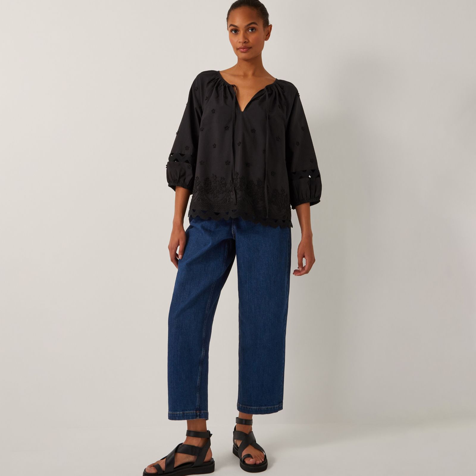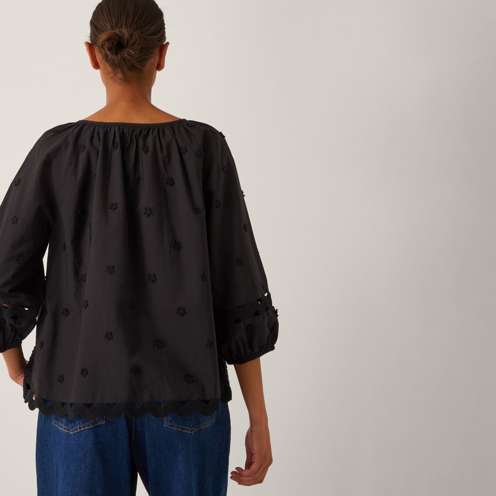 Step into effortless style with the Esme Emb top from Monsoon, where airy cotton fabric meets whimsical applique flowers and ric-rac trim for a fresh, uplifting look. Billowy 3/4 sleeves and an open v-front with decorative cords create a laidback silhouette, making this blouse ideal for easy-going brunches, relaxed weekends, or casual days at the office. Try pairing it with wide-leg jeans and flats for a chic, comfortable ensemble.