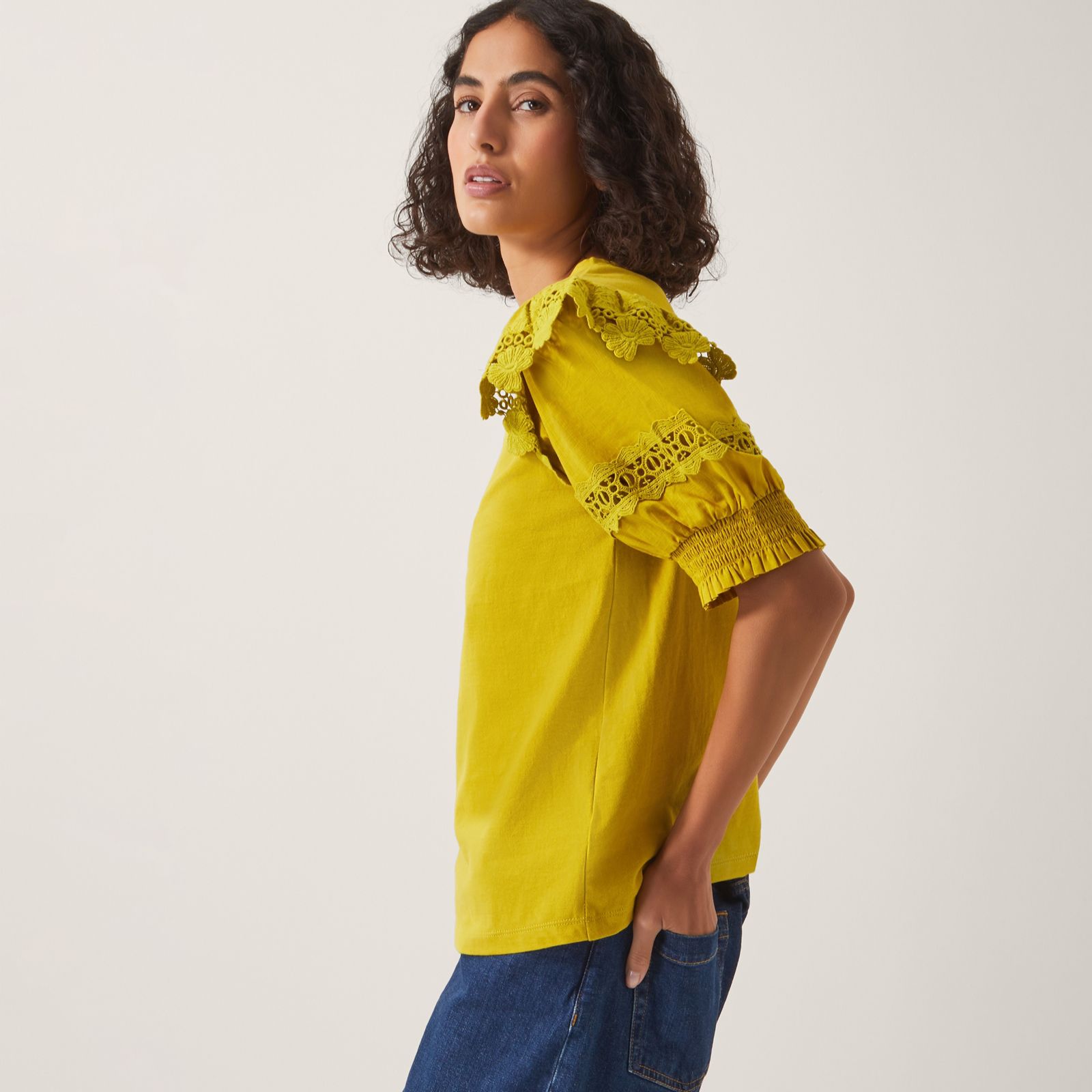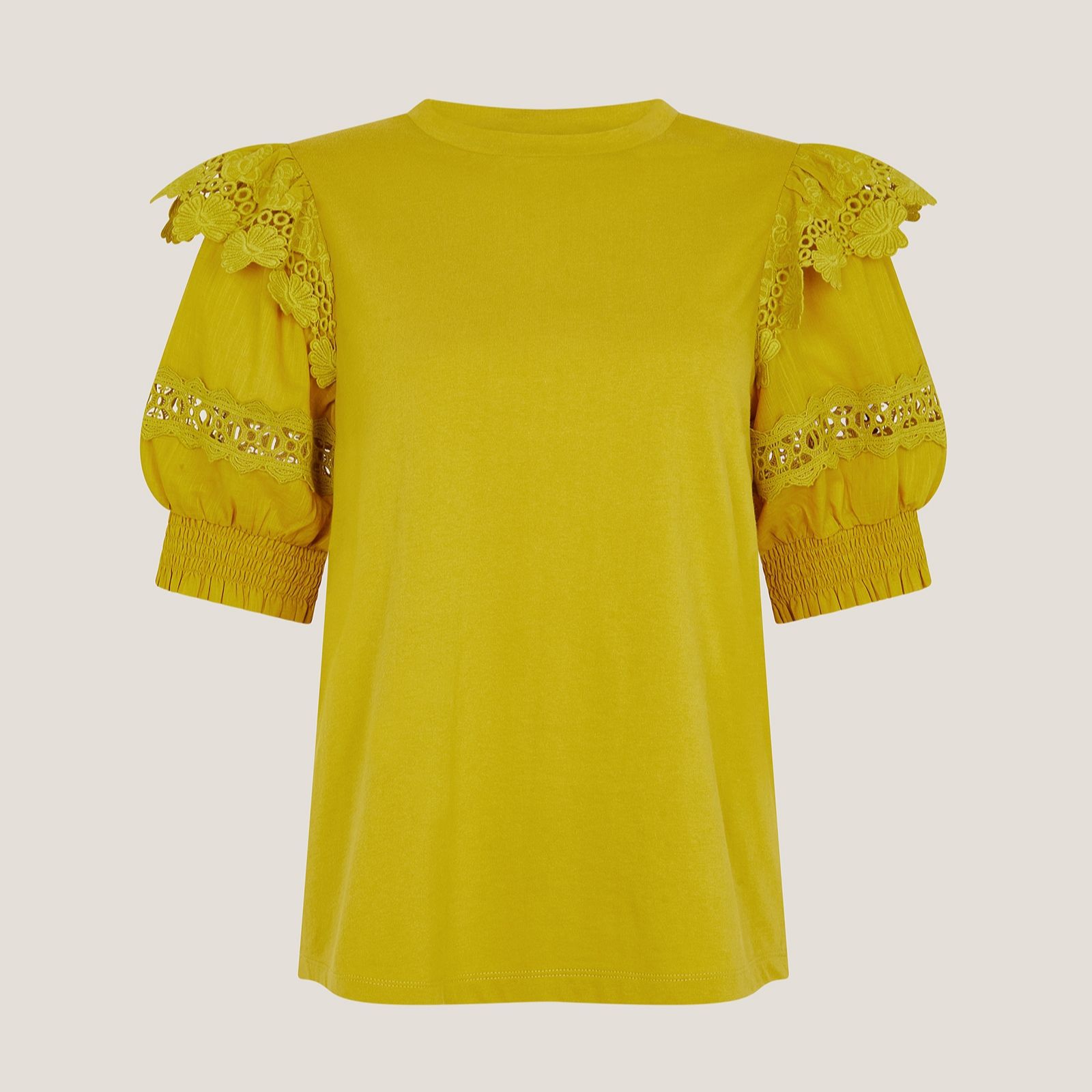Turn heads with the Fay Fabric Mix Top from Monsoon, where playful puff sleeves and delicate broderie frills bring a joyful twist to your everyday wardrobe. The soft jersey body offers comfort all day, making this top a go-to for relaxed brunches or catching up with friends. For an effortlessly stylish look, simply tuck it into your favourite jeans and slip on some loafers.
