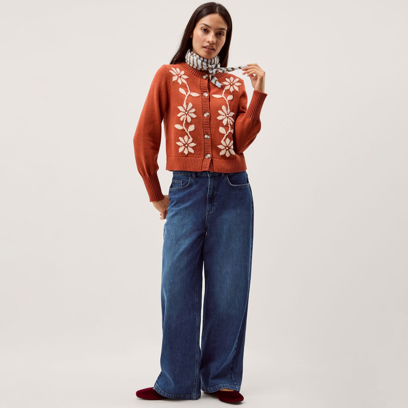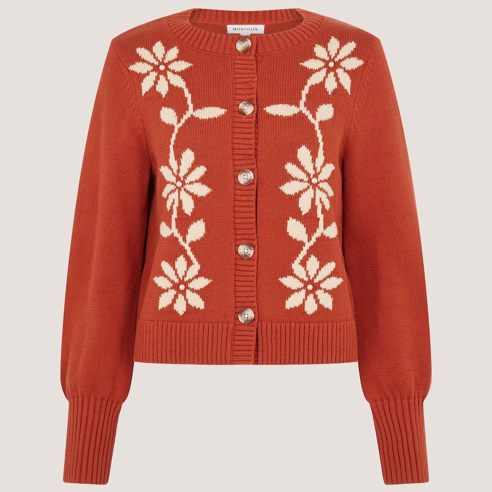 Bring a touch of playful elegance to your wardrobe with the Fiona Floral Cardi from Monsoon. Showcasing bold, oversized blooms, marble-inspired buttons and chic faux pearl accents, this semi-relaxed cardigan is perfect for brightening up your office attire or adding flair to your casual WFH days. Layer it over a simple cami and your favourite jeans for an effortlessly stylish look with a hint of vintage charm.