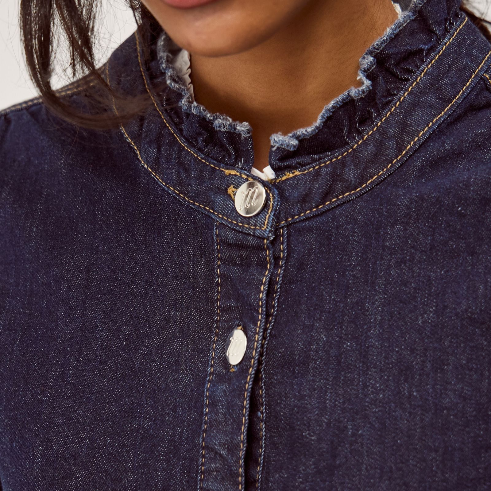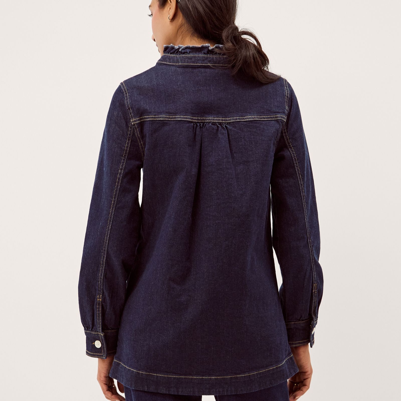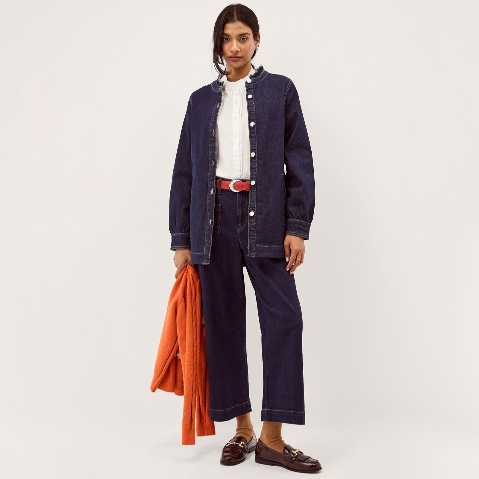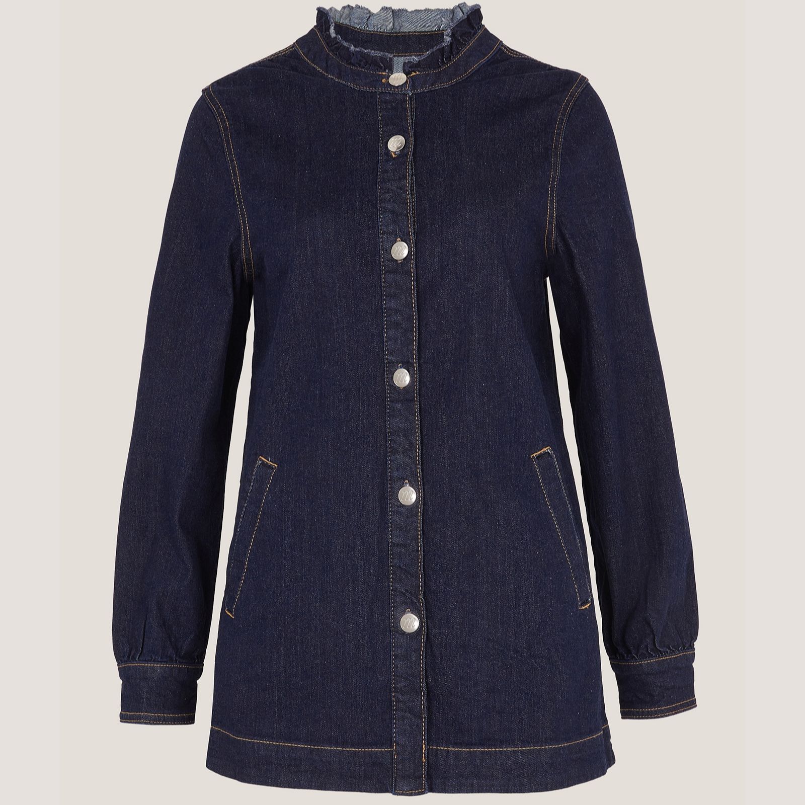 Dip into a new take on denim with Monsoon's Louisa longline jacket, crafted in a rich dark wash that exudes effortless sophistication. Featuring a frilly collar and cuffed blouson sleeves, this fitted style blends feminine detailing with a contemporary silhouette, making it perfect for everything from weekend brunches to casual evenings out. Try wearing it open over a crisp white tee and tailored trousers for a chic, layered look.