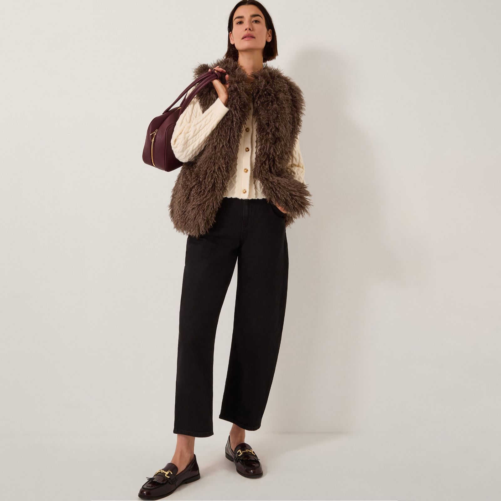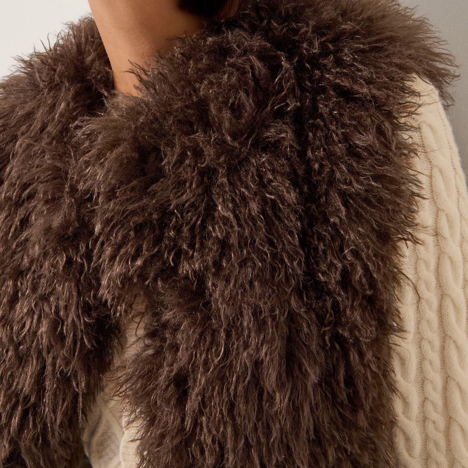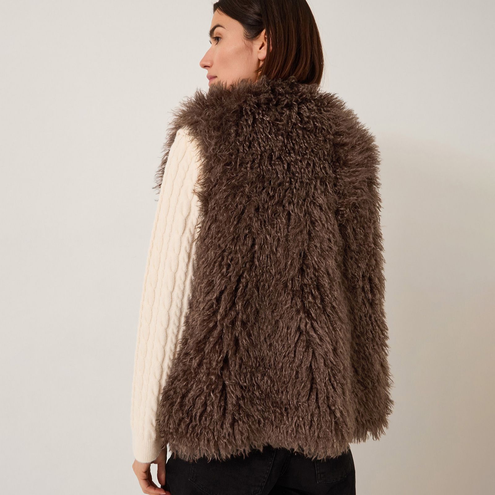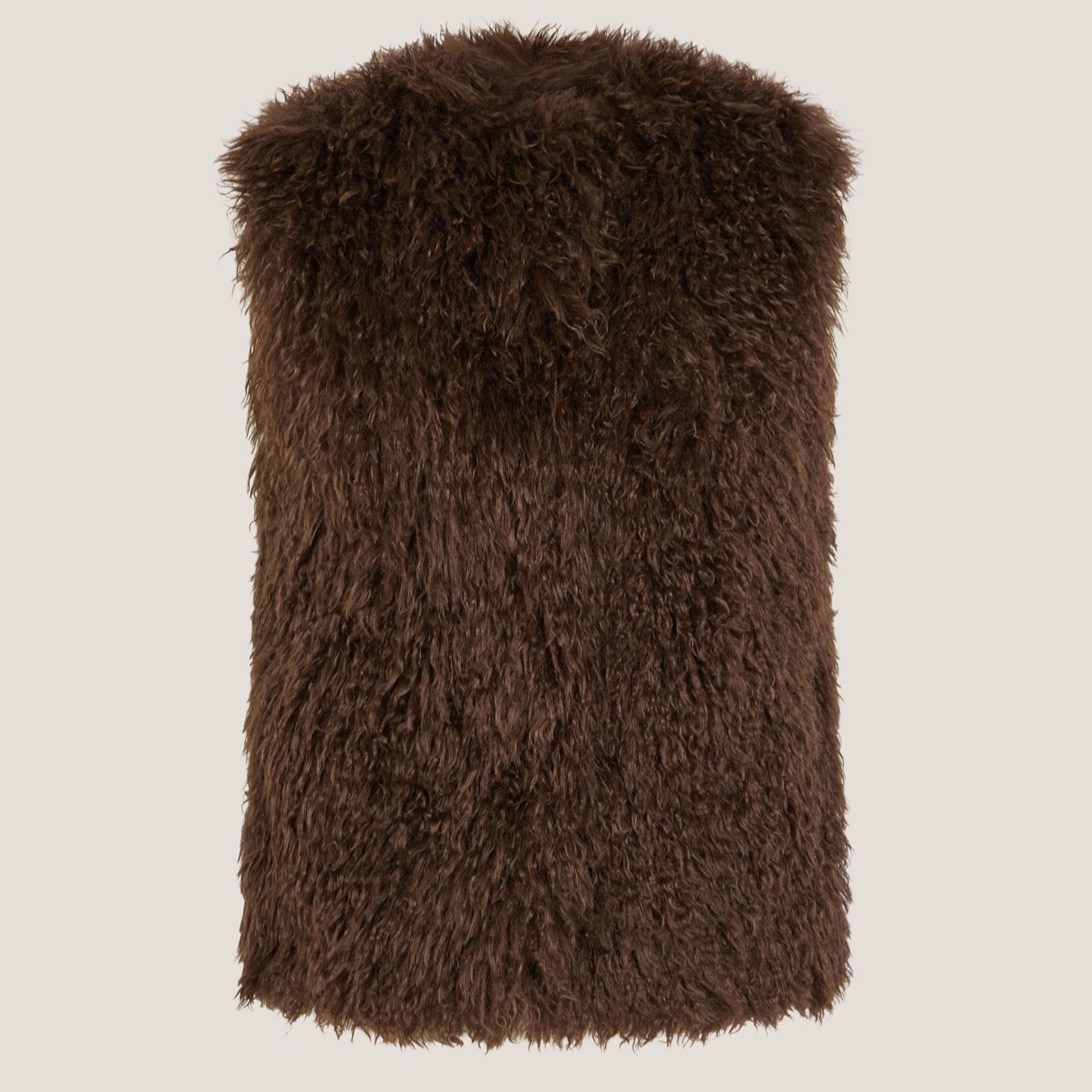 Channel vintage glamour in the Maeve fur gilet from Monsoon, designed to bring a dash of 70s-inspired flair to your wardrobe with its shaggy faux fur. Perfect for layering over autumnal outfits or adding a touch of Studio 54 glamour to your evening looks, this super-soft gilet offers statement style and comfort. Try pairing it with wide-leg trousers and boots for a retro-inspired ensemble.