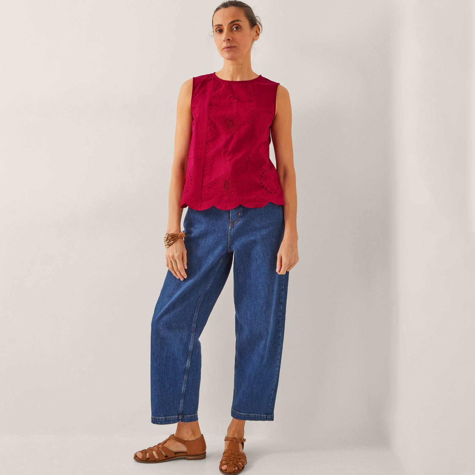 Breathe new life into your summer style with the Orla Broderie Tank from Monsoon, where delicate floral embroidery dances across a breezy sleeveless silhouette. Perfect for sunny days out or laid-back gatherings, its airy design keeps you cool and comfortable wherever the season takes you. Team it with linen trousers or denim shorts for a relaxed yet refined look.