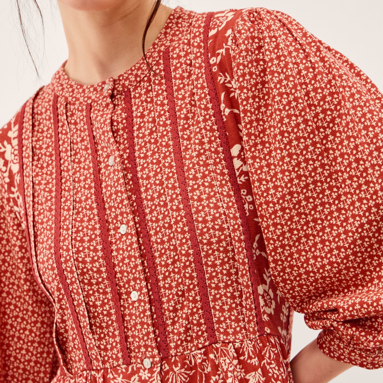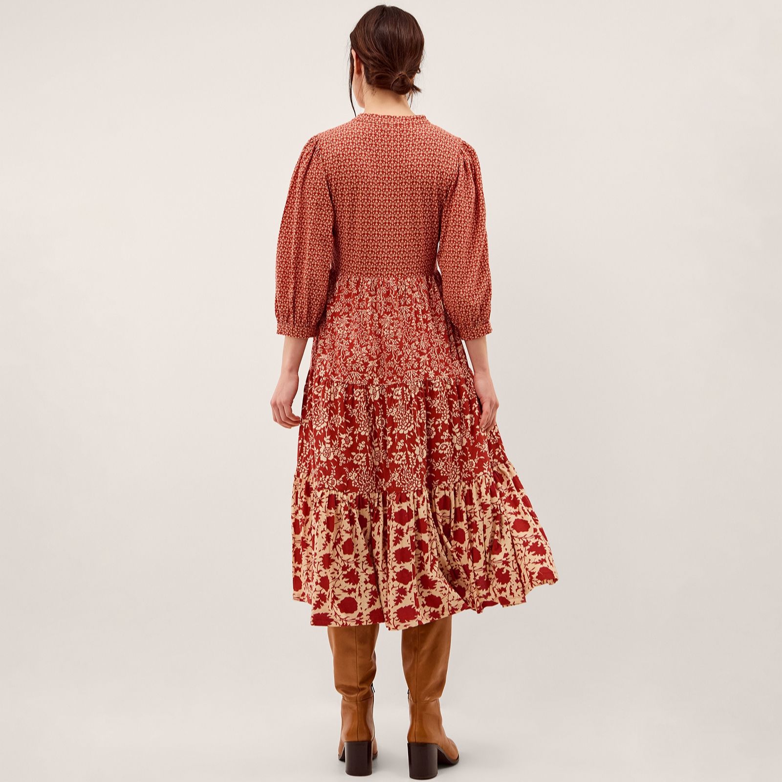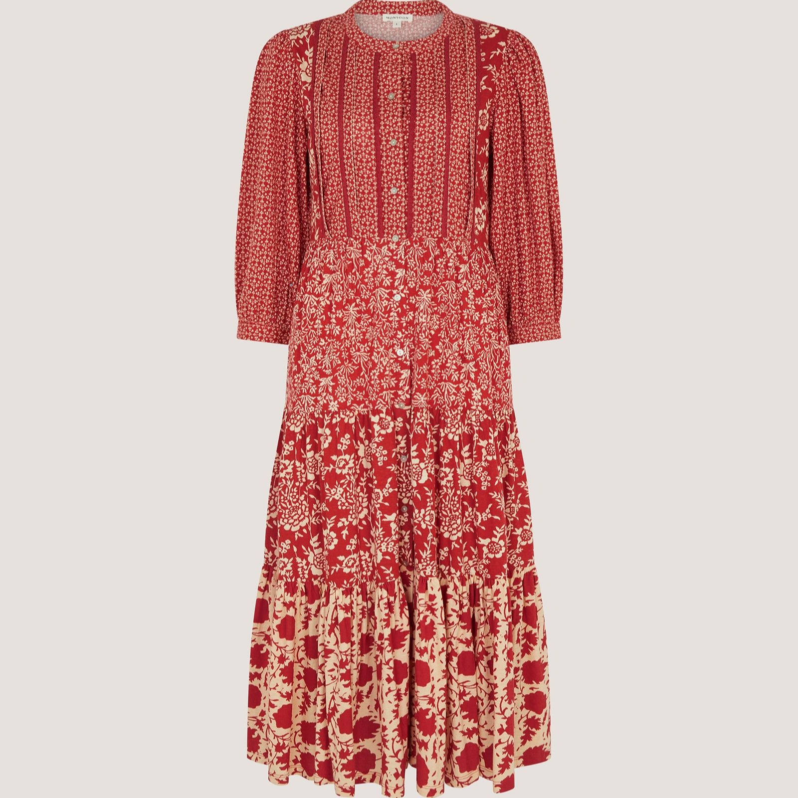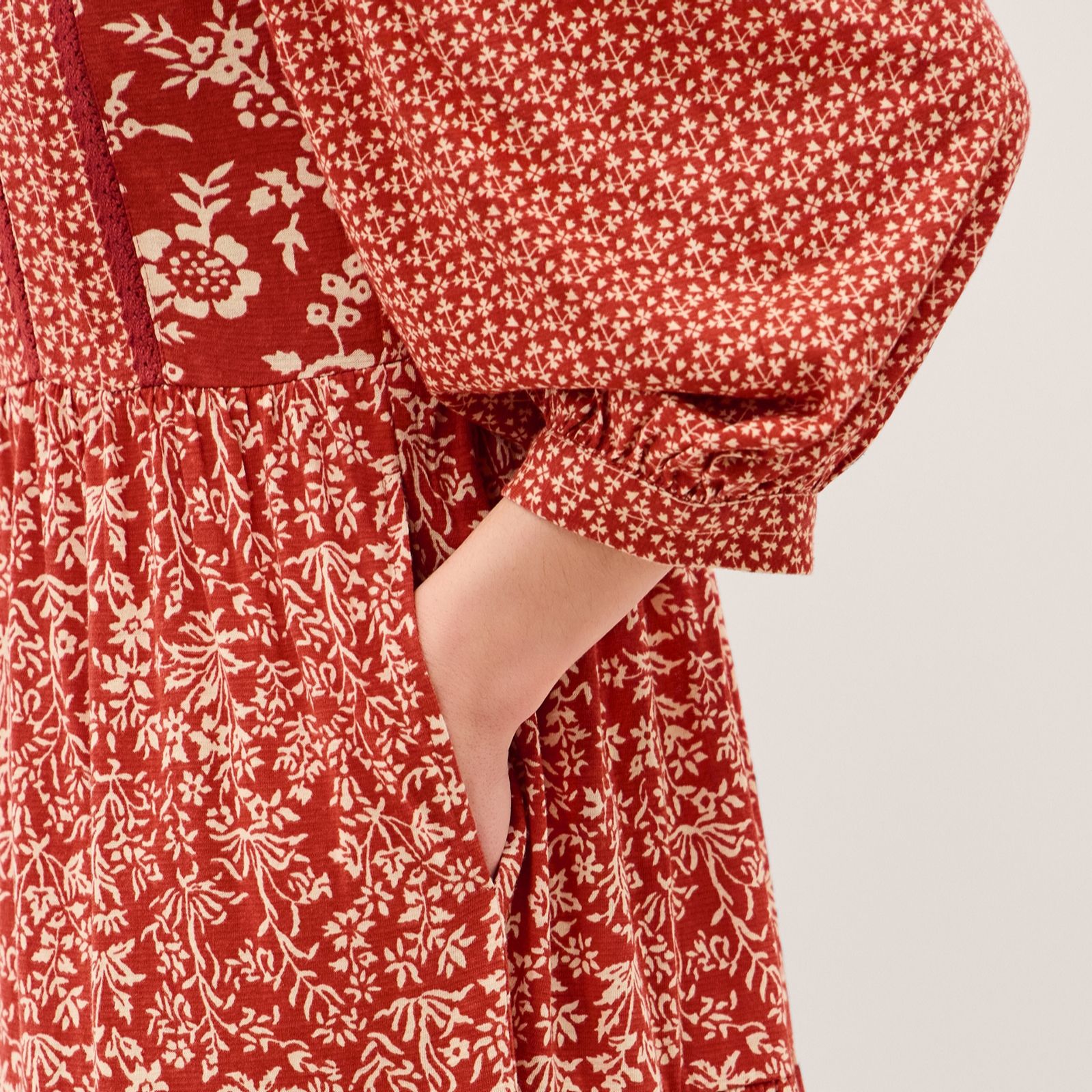 Turn heads in the Palmer print jersey dress from Monsoon, where rich red tones meet delicate floral motifs and lace panels for a romantic yet contemporary look. Perfect for springtime strolls with long boots or holiday wanderings paired with flats and a beach bag, this semi-relaxed dress offers effortless style and comfort. Try layering with a denim jacket for a chic, laid-back finish.