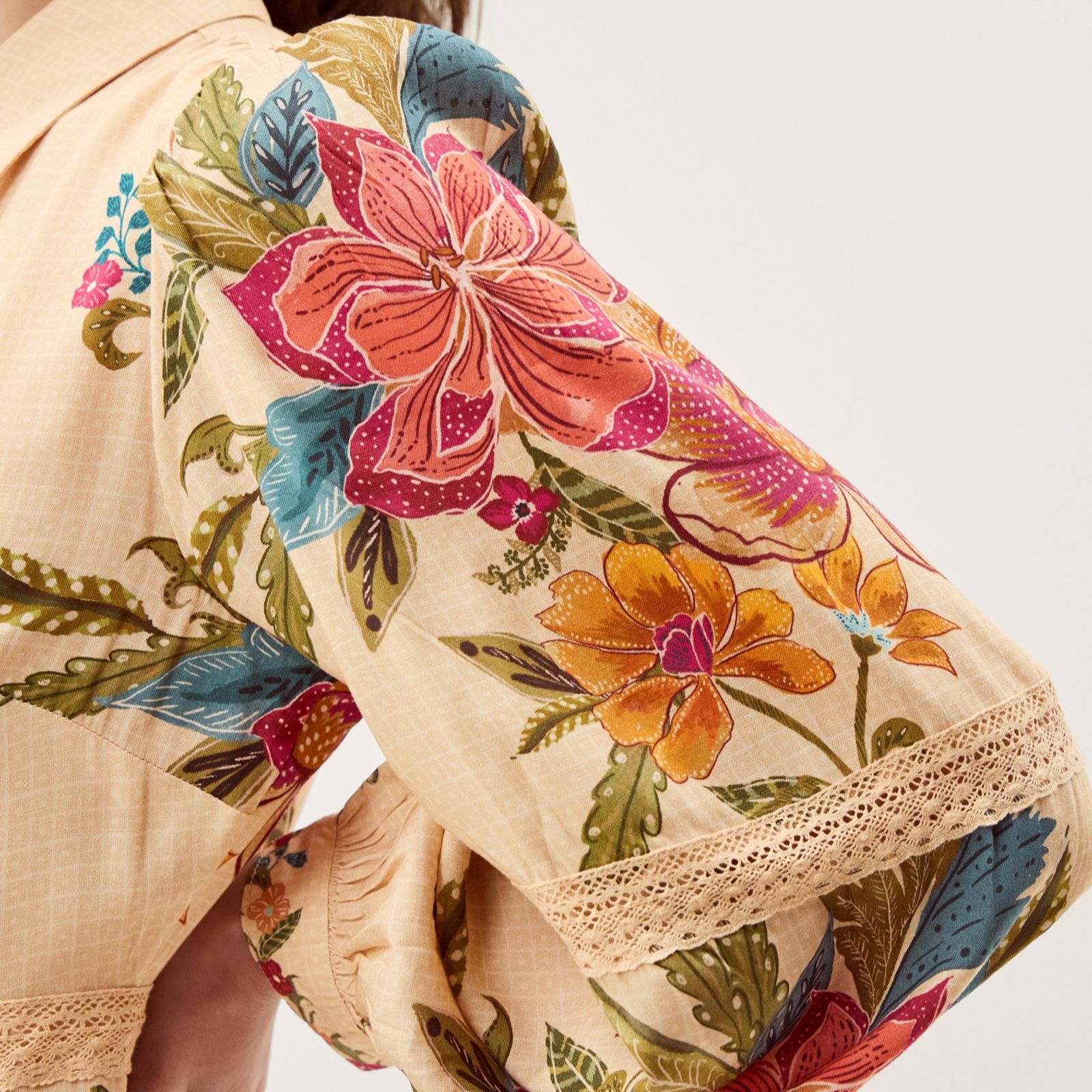 - Long sleeves with lace detailing