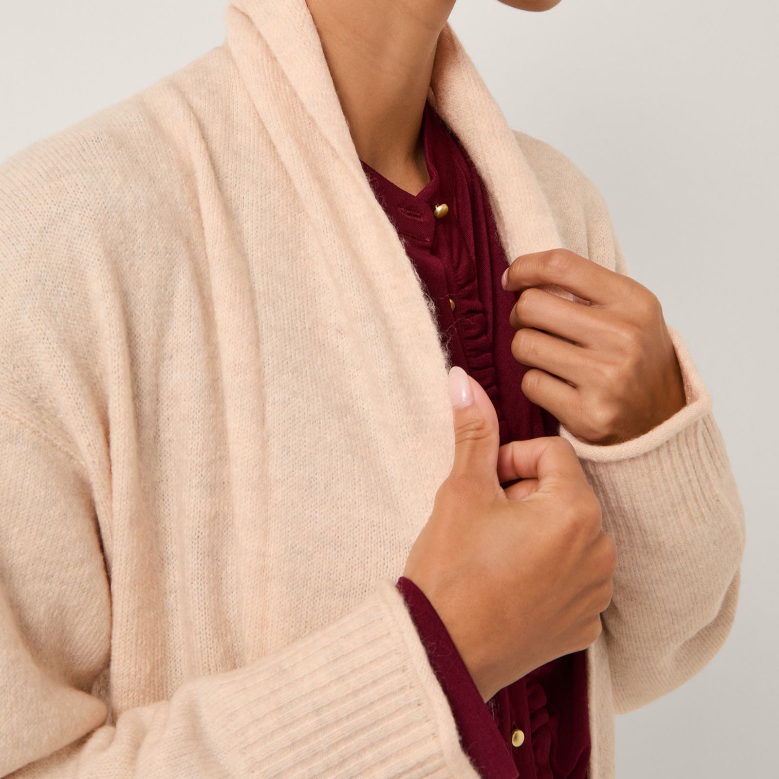 Layer up in the soft sophistication of the Monsoon Sacha shawl coatigan, featuring a cosy shawl-inspired collar and a flowing hem that falls just above the ankles. Perfect for layering when the air turns crisp, its open-front design and roomy patch pockets make it a versatile choice for everything from weekend strolls to relaxed evenings at home. Pair it with slim-fit trousers and shearling boots for an effortlessly chic look.