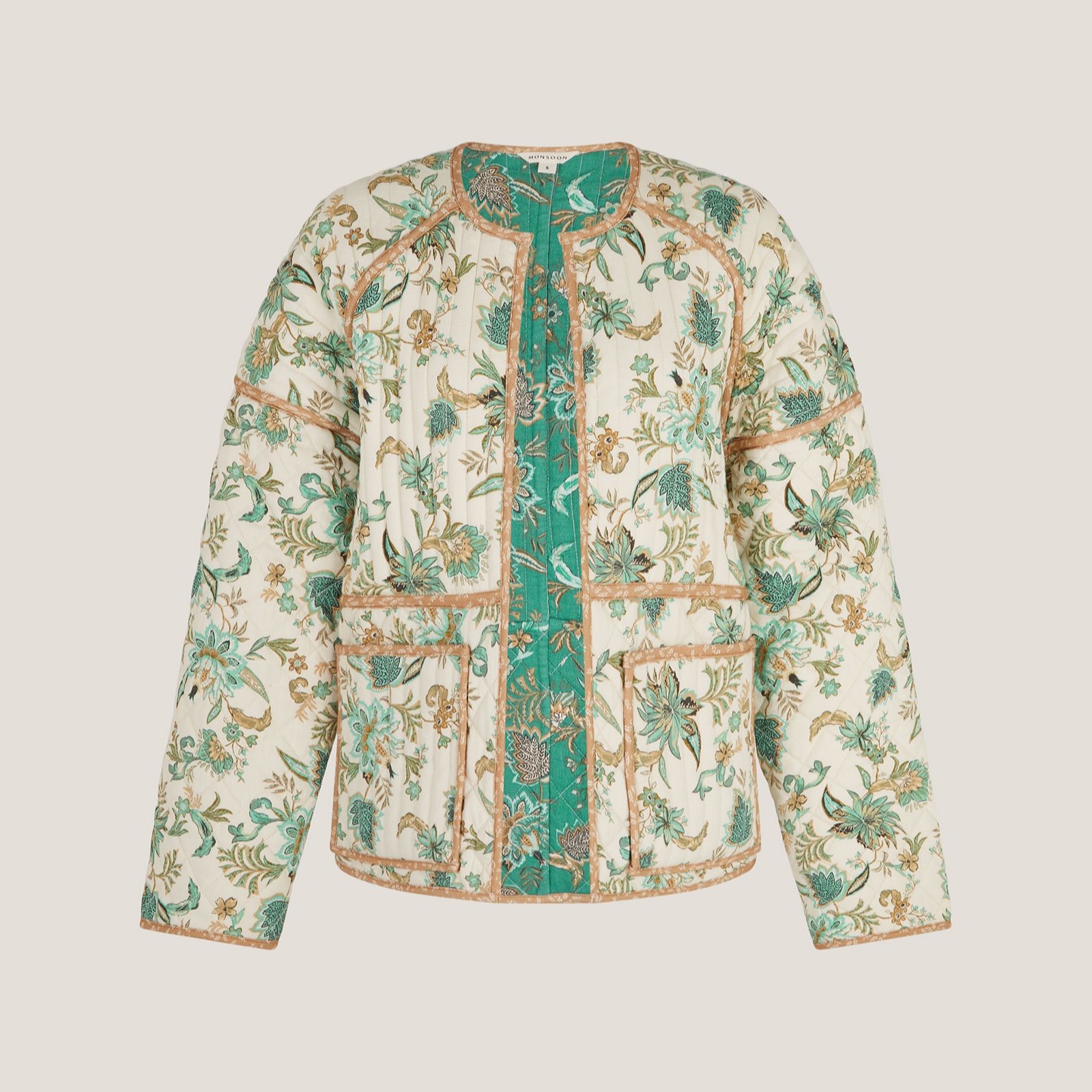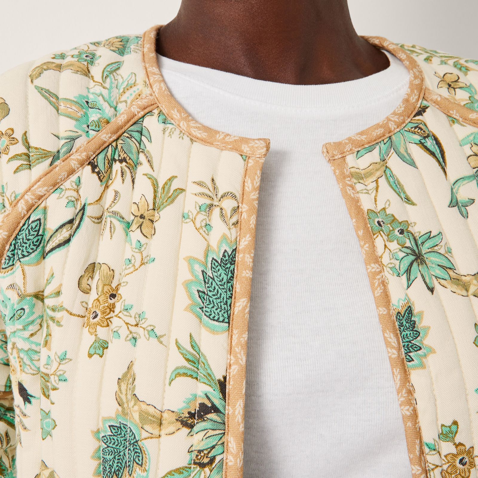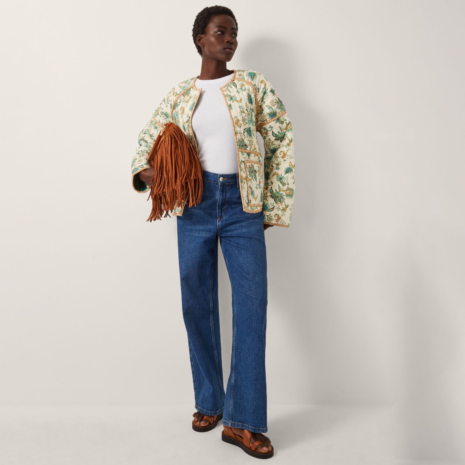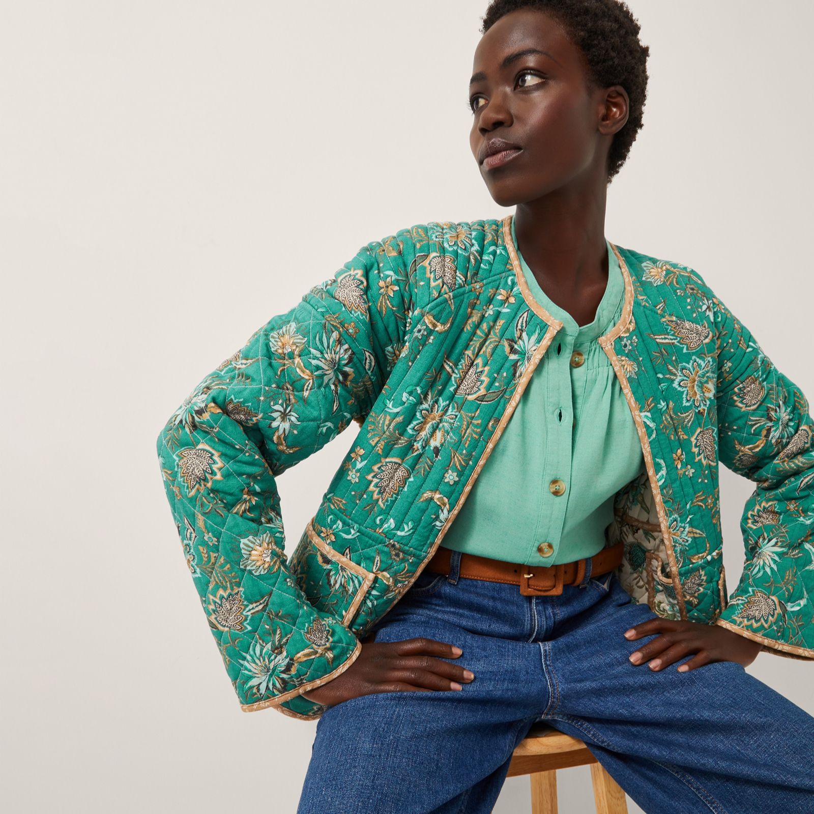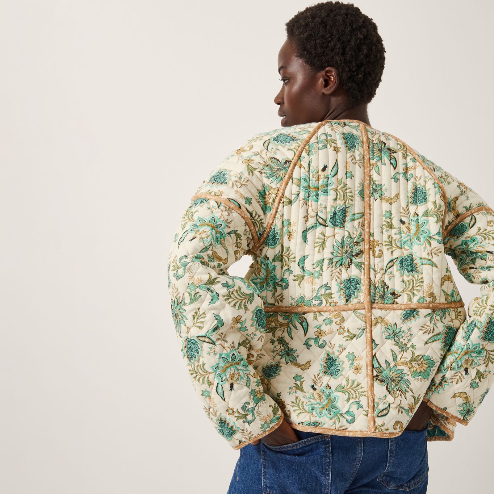 Bring playful versatility to your wardrobe with the Monsoon Saorise Patch Print Embroidered Jacket. This standout piece features intricate floral embroidery and a reversible design that lets you switch between a relaxed neutral or a bolder patterned look. The soft quilted texture and roomy patch pockets make it perfect for days out, relaxed weekends or adding personality to your everyday outfits. Try styling it over a simple tee and jeans for effortless charm.