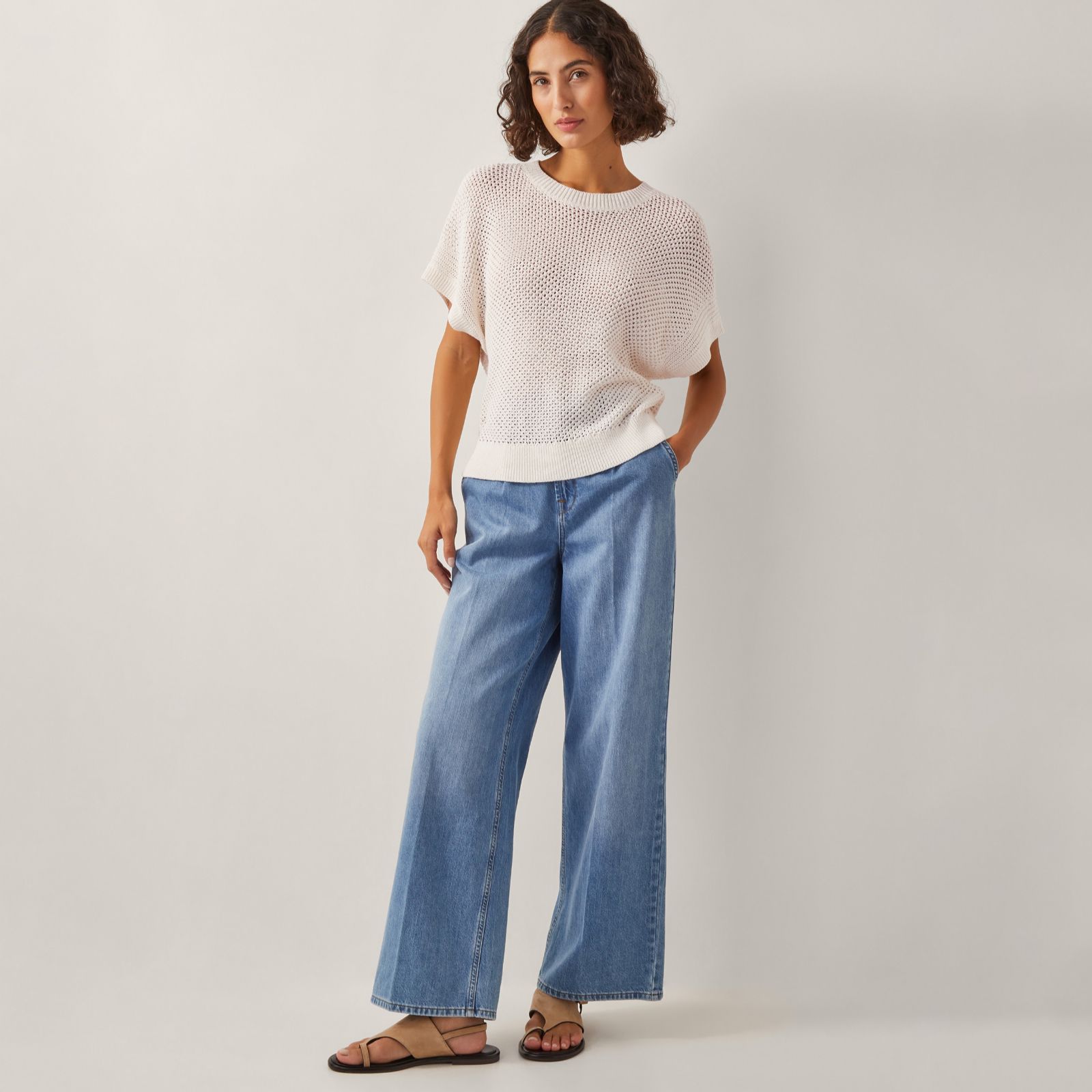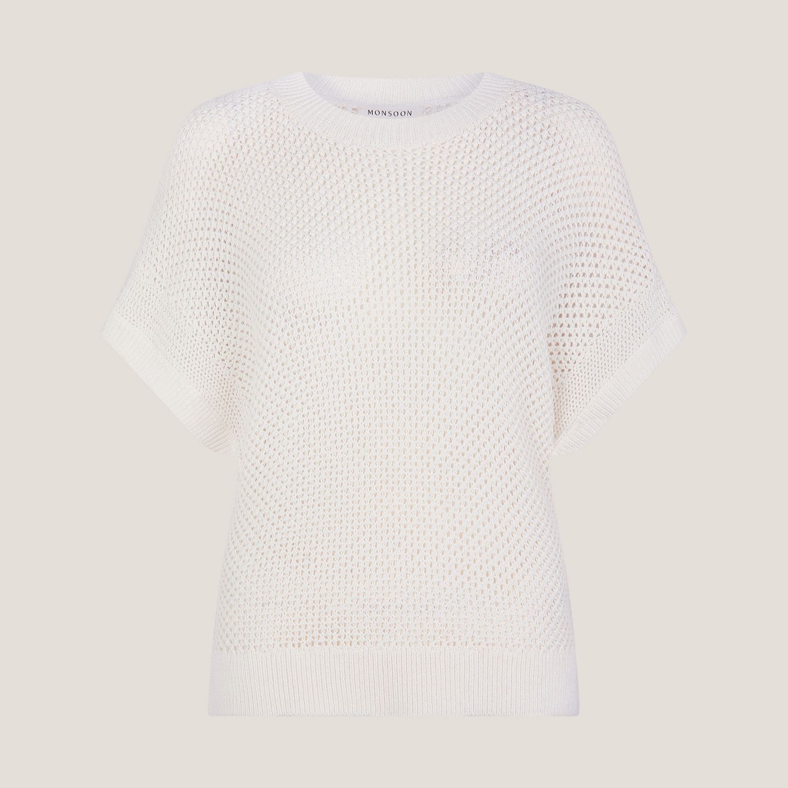 Breathe new life into your summer wardrobe with the Sybil Short Sleeve Knit Jumper from Monsoon. This jumper's airy boxy fit, wide short sleeves and neat ribbed trim create a relaxed yet refined silhouette, perfect for layering over a cami or bralette. Whether thrown on with jeans for easy days or styled over swimwear for holiday moments, this knit is your ticket to effortless style.