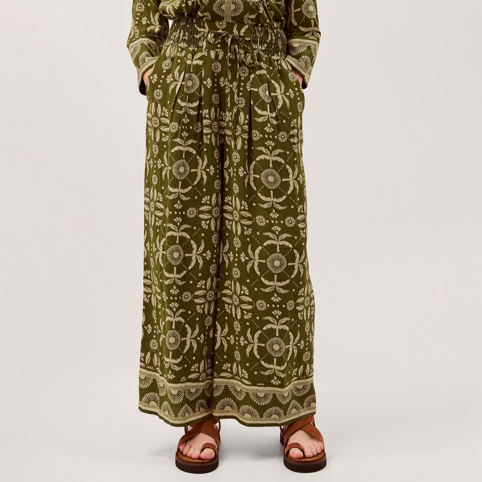 - Elasticated waistband and side pockets