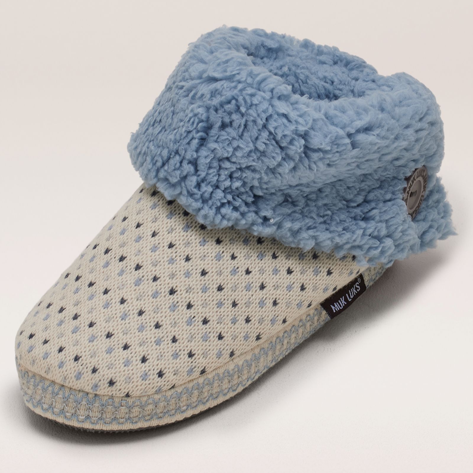Reach for comfort with the Muk Luks Melinda bootie slippers, where cosy faux-fur cuffs and lining meet playful taping and a decorative button for a look that brightens up chilly days at home. Perfect for lounging, nipping outside or unwinding after a long day, these slippers offer warmth and style in equal measure. Try pairing them with your favourite loungewear set or leggings for a snug, put-together feel.
