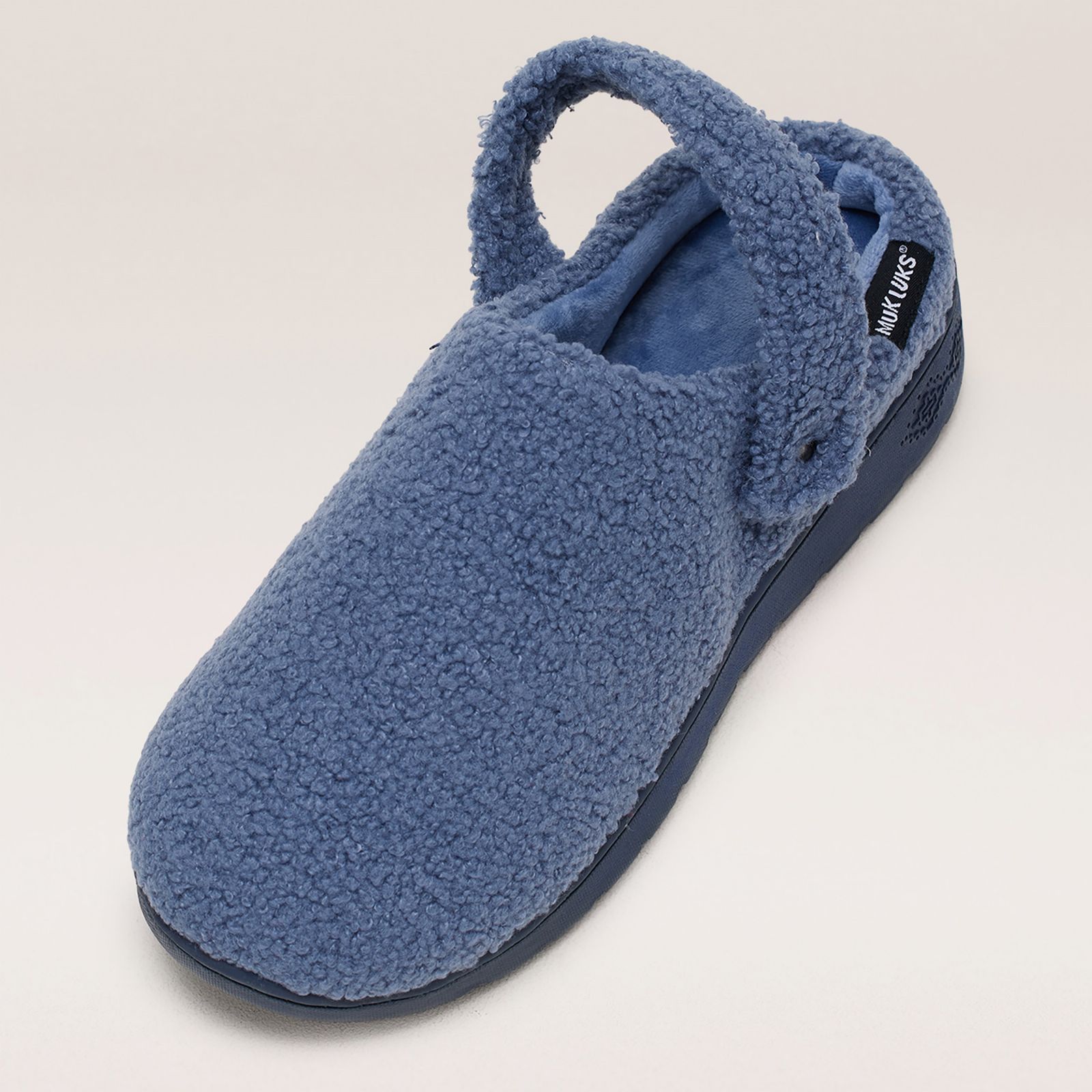 Delve into the comfort of the Muk Luks Quianna mule slippers, where cosy faux fur, a geometric heel counter and a clever adjustable back strap invite you to unwind in style. Perfect for relaxed mornings at home or nipping out to the garden, their supportive footbed and flexible sole make every step a treat. Try pairing these versatile slip-ons with your favourite loungewear set for a snug, effortless look.