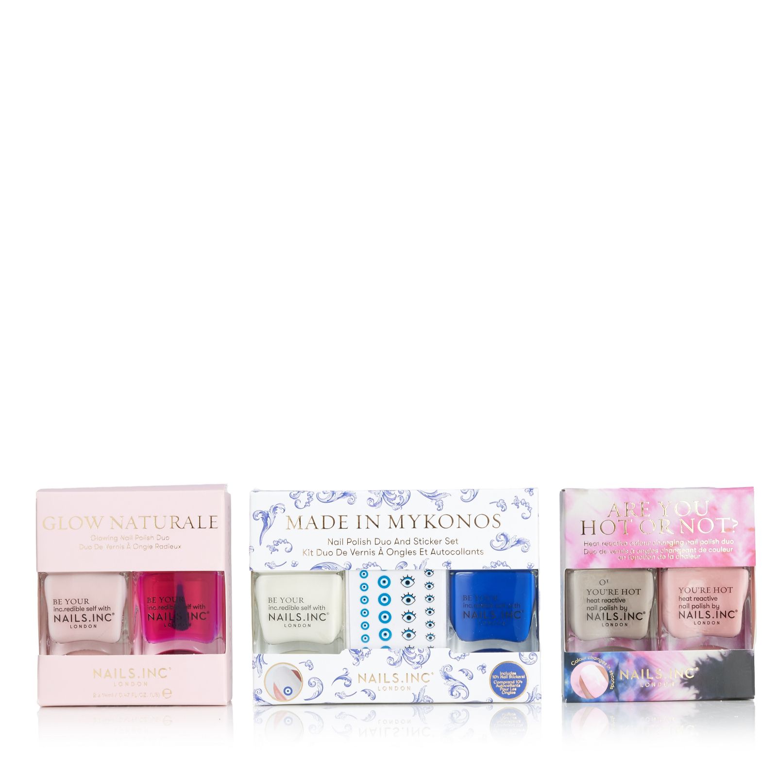 - 1 x Made in Mykonos Duo (14ml each) - You're My Sol Mate (a bright white shade), Need Some Vitamin Sea (a cobalt blue shade), a set of nail stickers