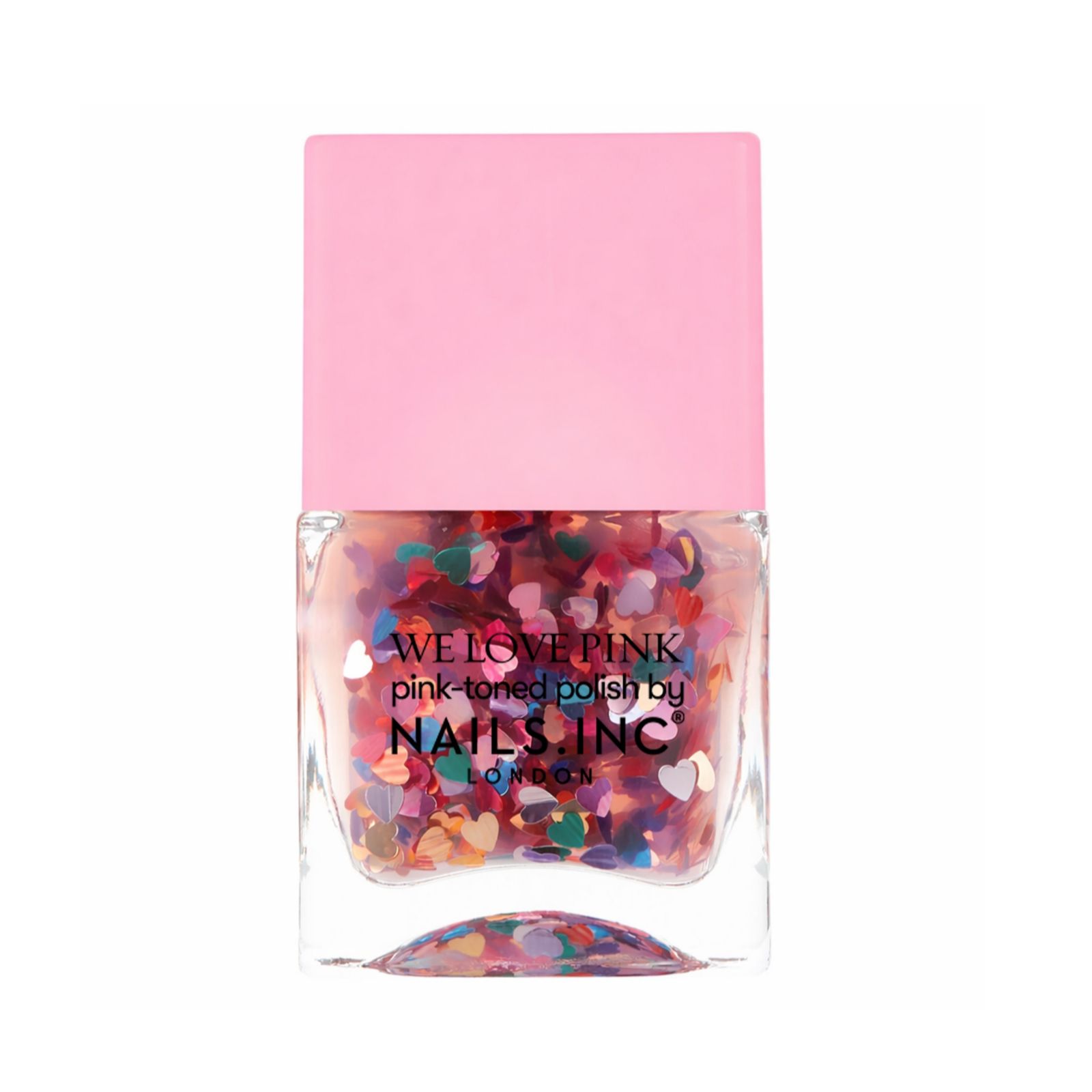 Paint your nails in every shade of pink with the Nails Inc We Love Pink four-piece set, featuring a playful rainbow confetti topper and a trio of pink polishes in deep burgundy, hot pink and candy pink. Whether you're layering for a party-ready finish or keeping it classic, this collection helps you create fun, personalised looks for any mood or occasion.