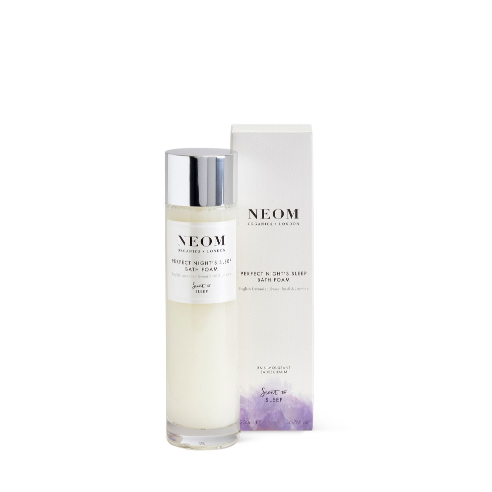 - 1 x Perfect Night's Sleep Bath Foam (200ml) - from Neom's Scent to Sleep range, a dreamy combination of 19 essential oils including English lavender, jasmine and sweet basil, expertly blended to help you relax and prepare for sleep. This SLS-free formula is designed to help gently cleanse and condition your skin, enriched with marshmallow, coconut oil, aloe and sweet almond oil