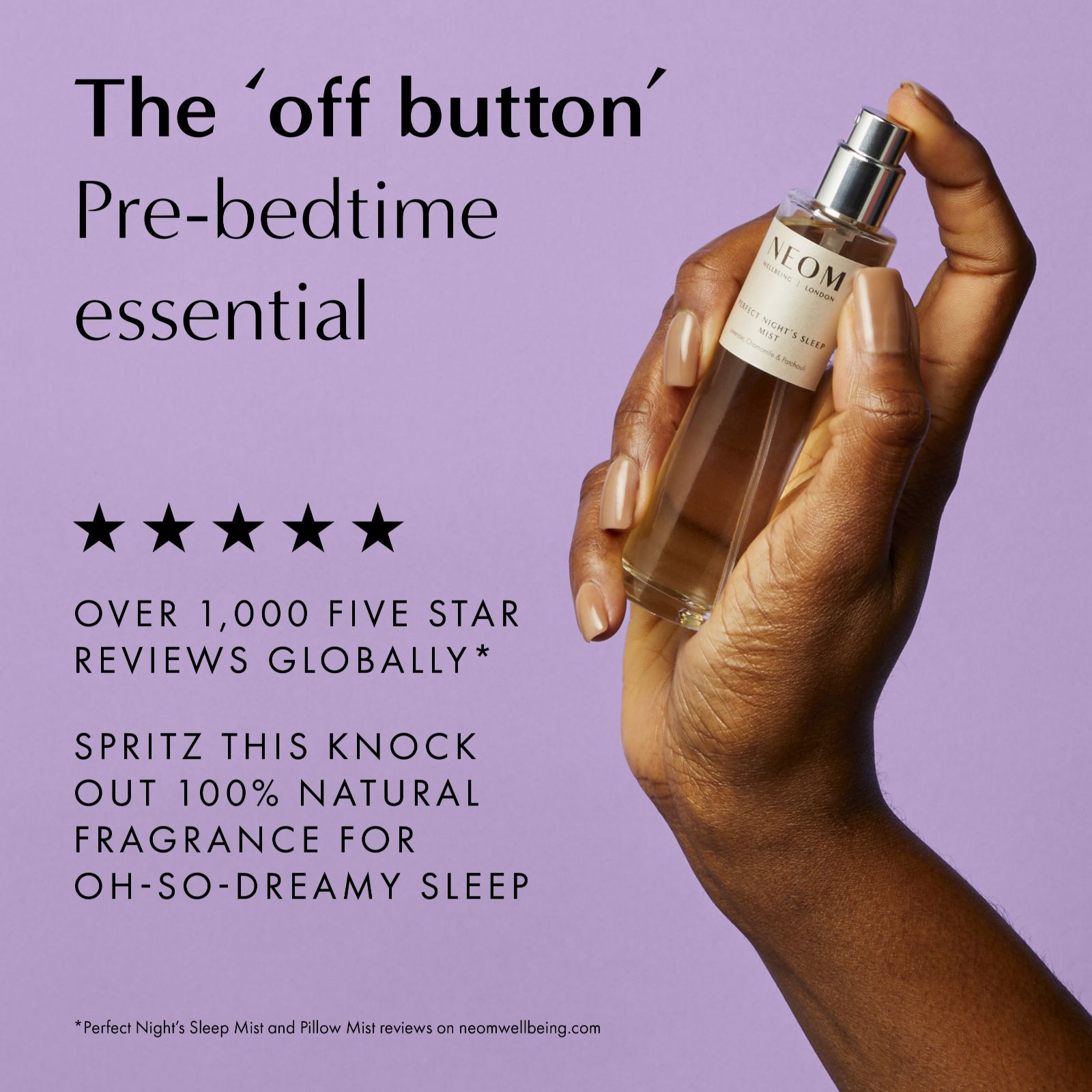 - 1 x Perfect Night's Sleep Pillow Mist (30ml) - a dreamy combination of 19 essential oils including English lavender, jasmine and sweet basil, expertly blended to help you relax and prepare for sleep, from Neom Wellbeing's Scent to Sleep range