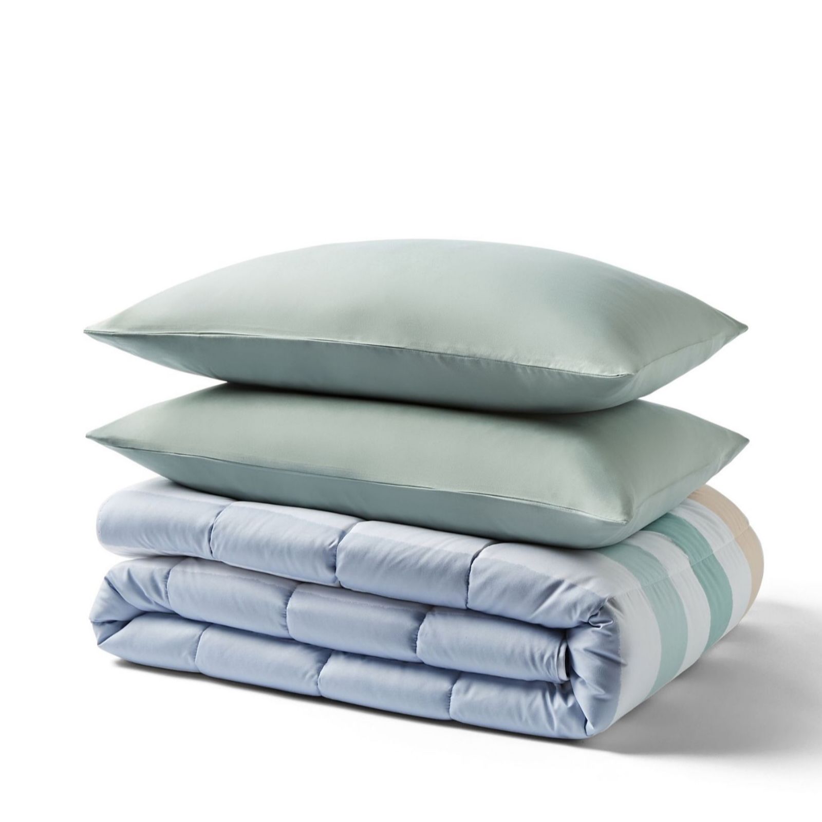 Enjoy effortless comfort every night with the Night Lark Printed Stripes Coverless 6 Tog Duvet Set, designed to simplify your bedding routine with a built-in silky cover - no more wrestling with separate duvet covers. Lightweight and breathable, its ideal for spring and summer, making it perfect for busy homes, guest rooms or quick refreshes after sleepovers.