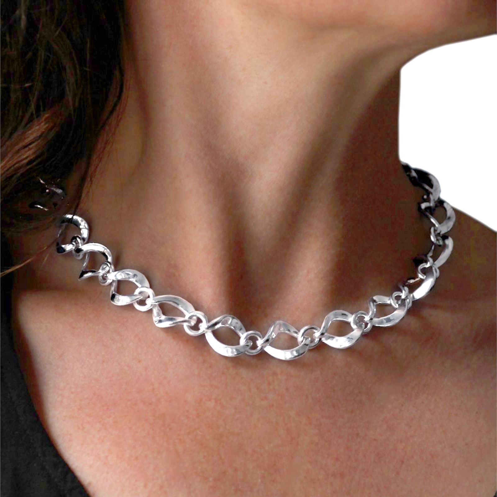 Nina B Heavy Twisted Link Necklace Sterling Silver
