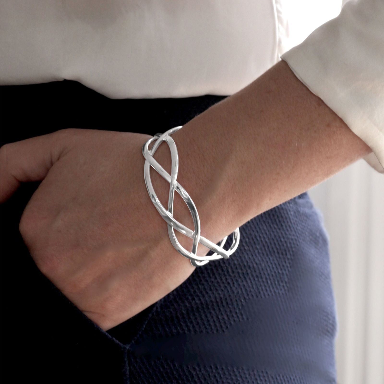 Nina B Loose Plait Cuff Bangle Sterling Silver