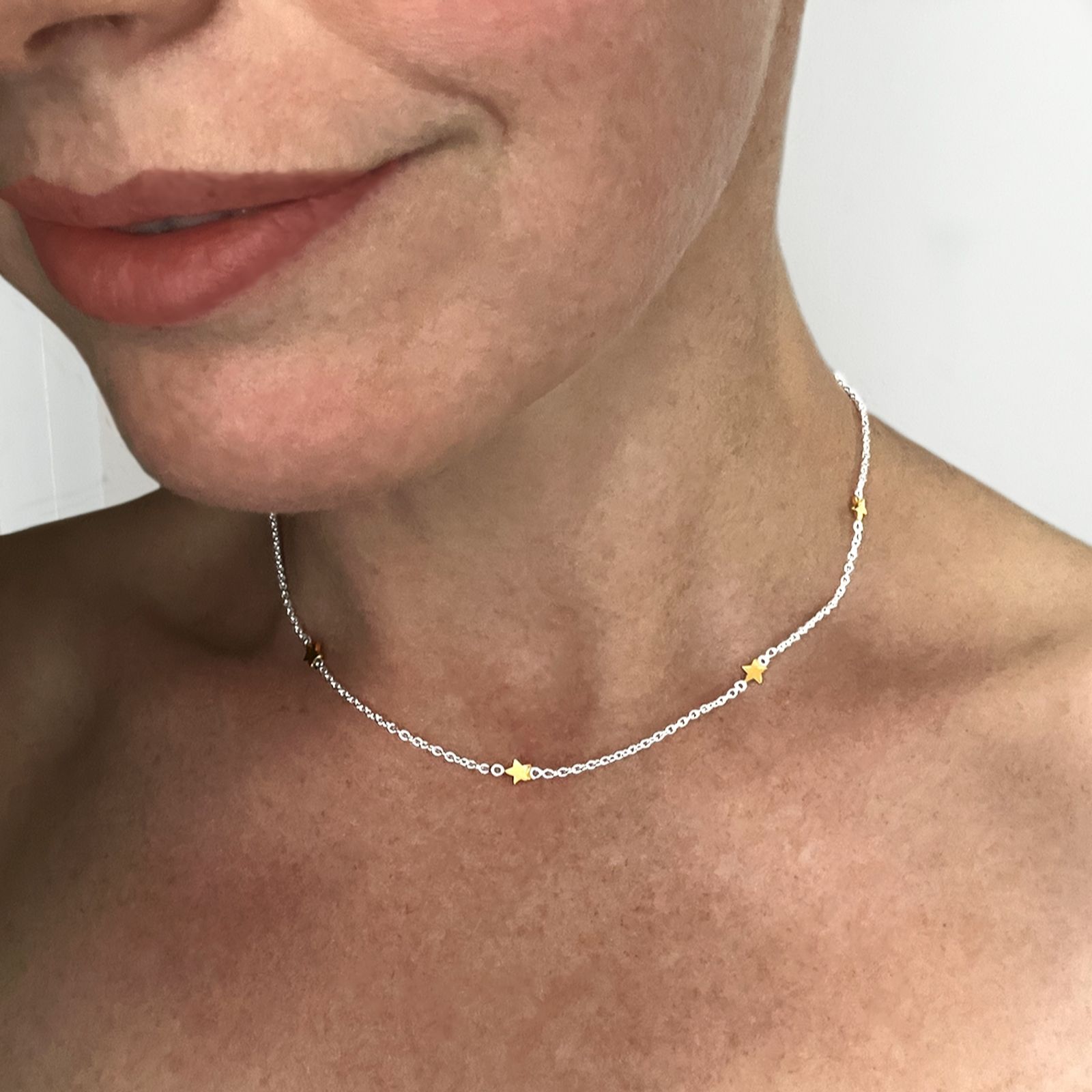 Nina B Sterling Silver Chain Necklace of Gold Stars