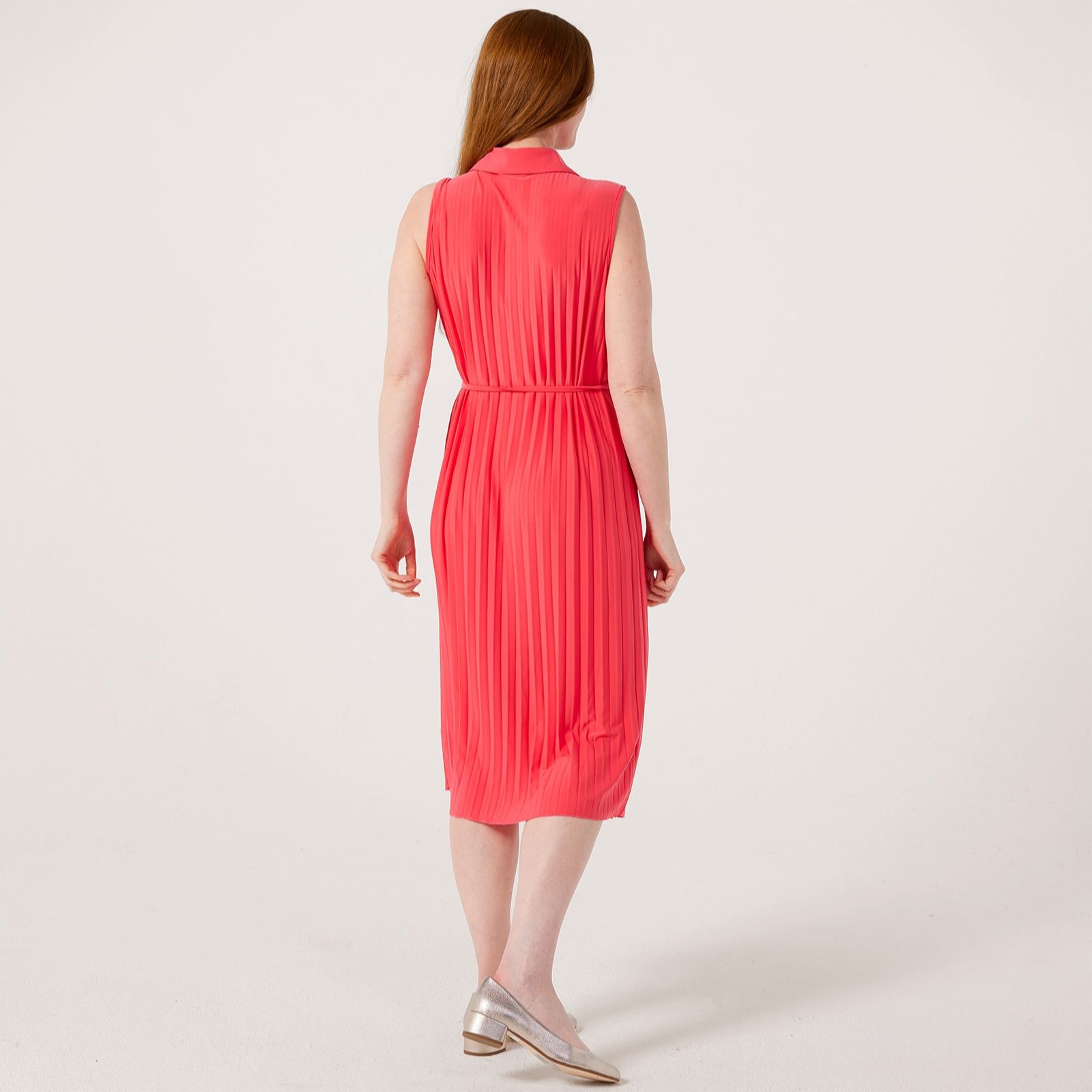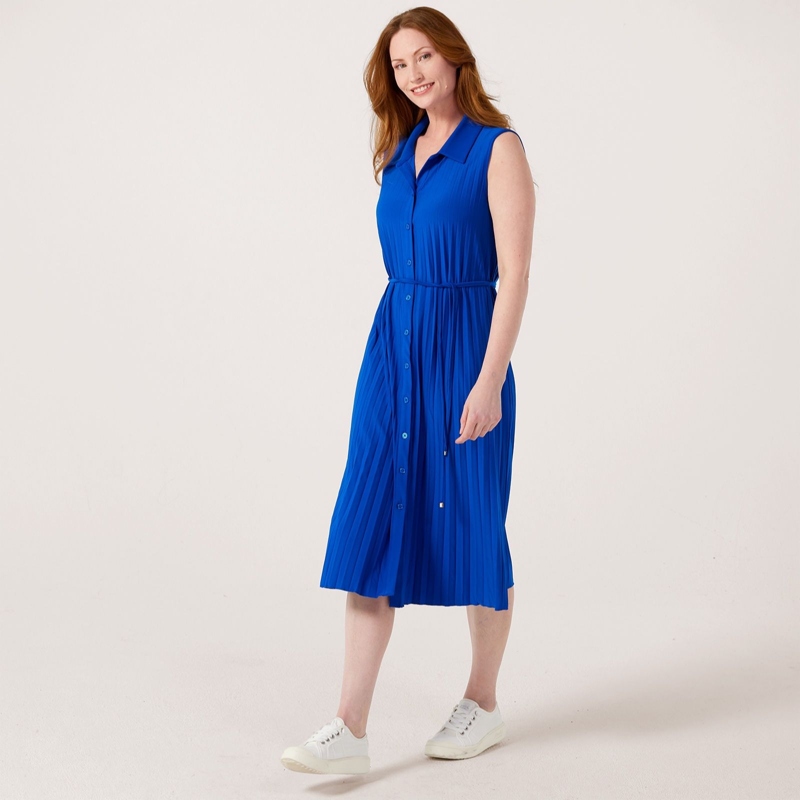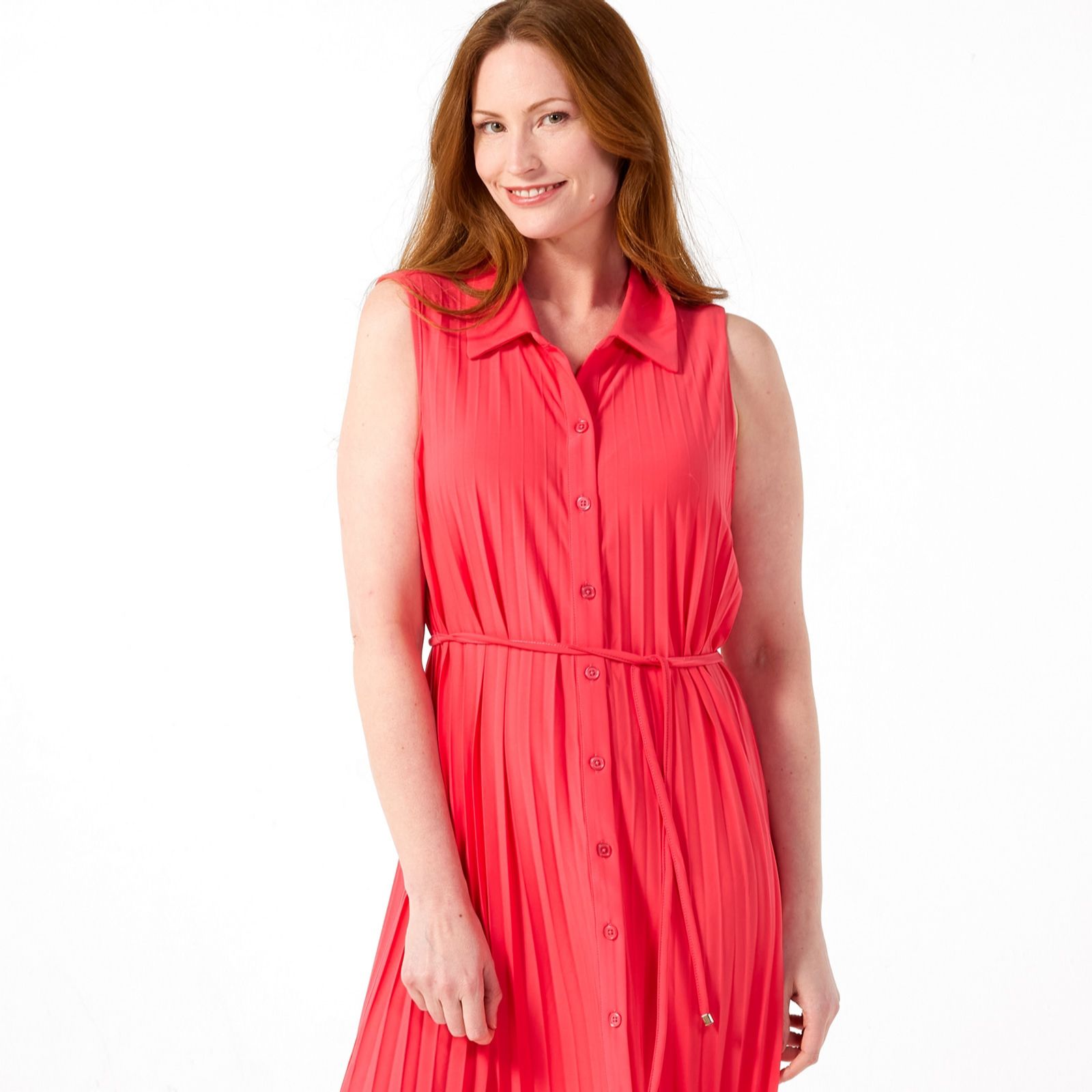 Step into effortless sophistication with the Nina Leonard collared midi pleated dress. This semi-fitted, sleeveless dress showcases a classic shirt collar and a button front placket, offering a timeless yet contemporary look. Perfect for garden parties or evening soirees, this versatile dress can be styled with strappy heels and a statement clutch for an elegant ensemble.
