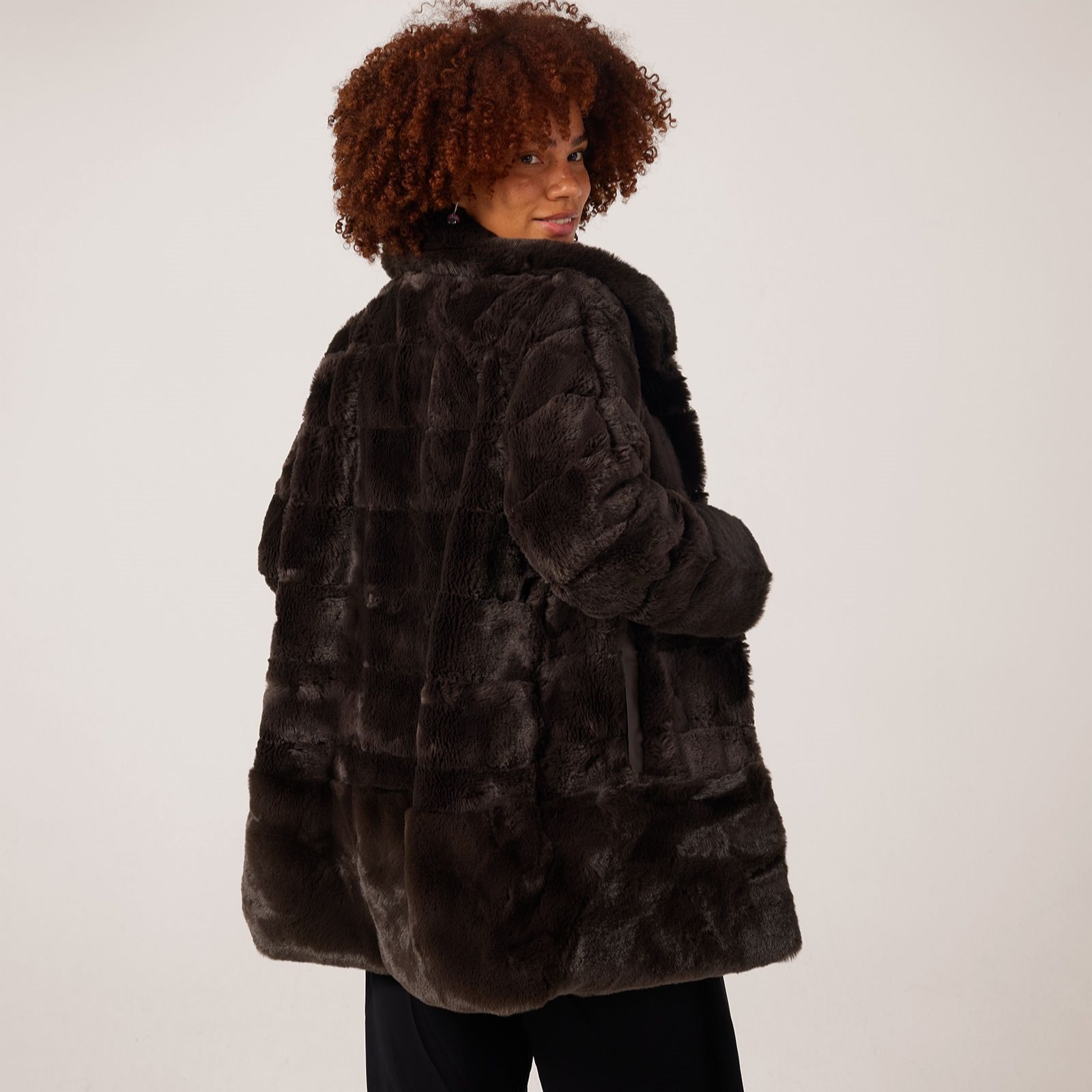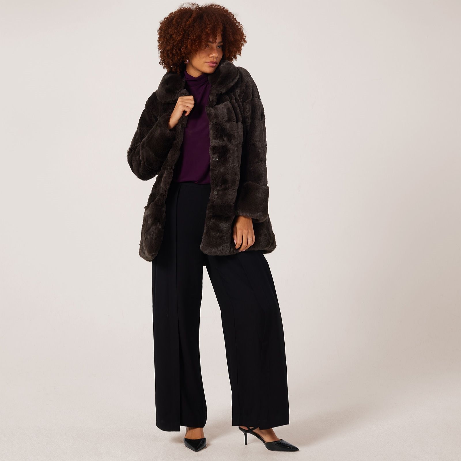 - Solid faux fur cuffs and hem