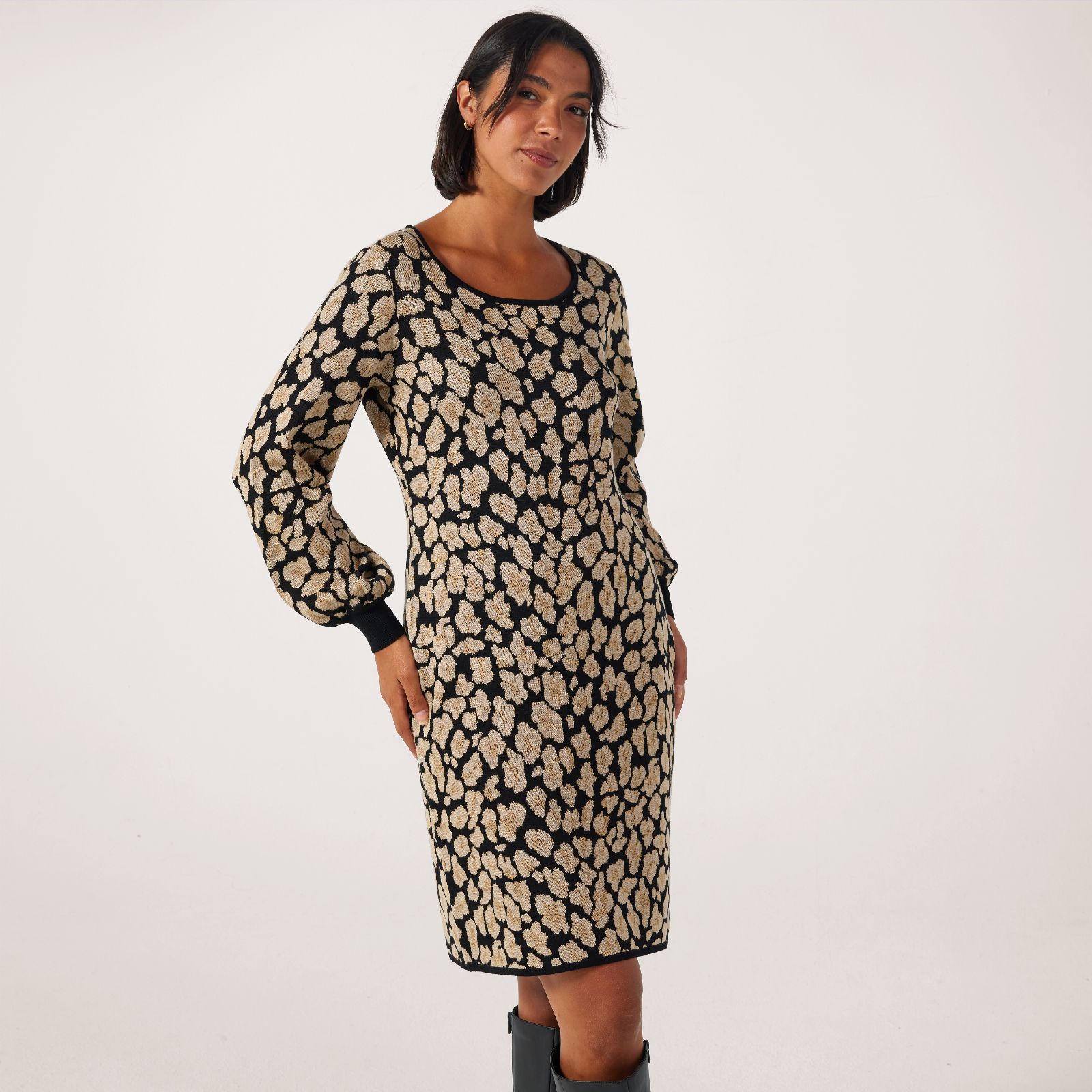 Show off your style in the Nina Leonard jacquard knit sheath dress, where timeless jacquard knit meets a chic fitted silhouette and elegant scoop neckline. Perfect for everything from workdays to weekend brunches, this trendy design brings comfort and sophistication to any occasion. Try pairing it with knee-length boots and a tailored coat for a polished, contemporary look.