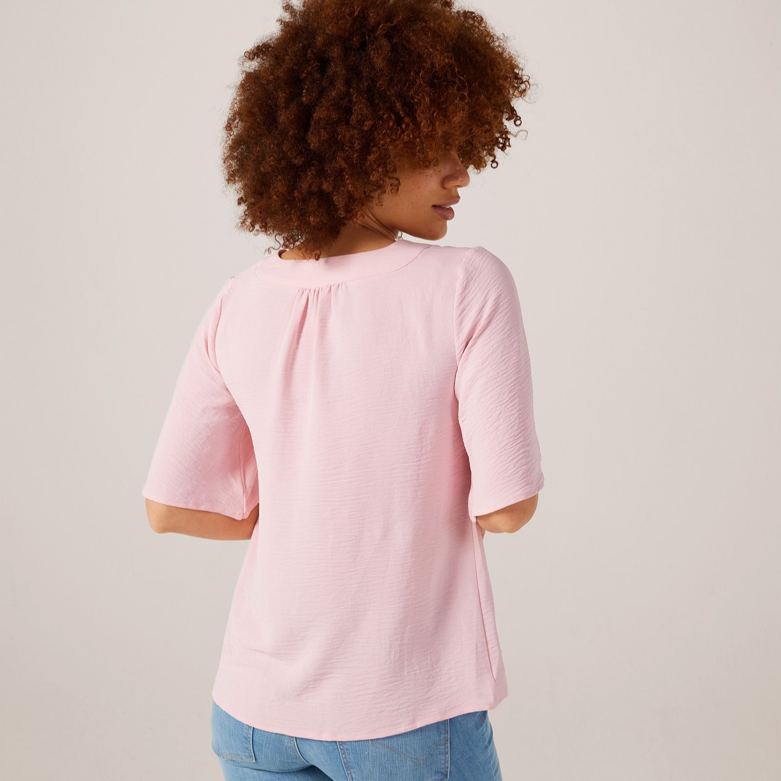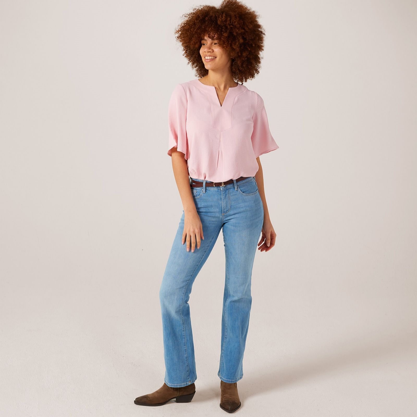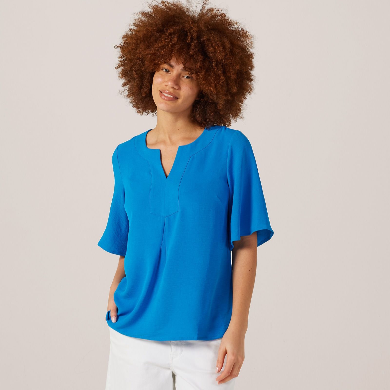 Step into effortless style with the Nina Leonard round neck notch front textured wave top. This semi-fitted top boasts a unique textured wave print that adds a touch of sophistication to your everyday wardrobe. The high-low hem and flutter sleeves create a gorgeous silhouette, while the split neck detail adds a modern twist. Perfect for both casual and dressy occasions, pair this versatile top with your favourite jeans or a sleek skirt for a chic look.