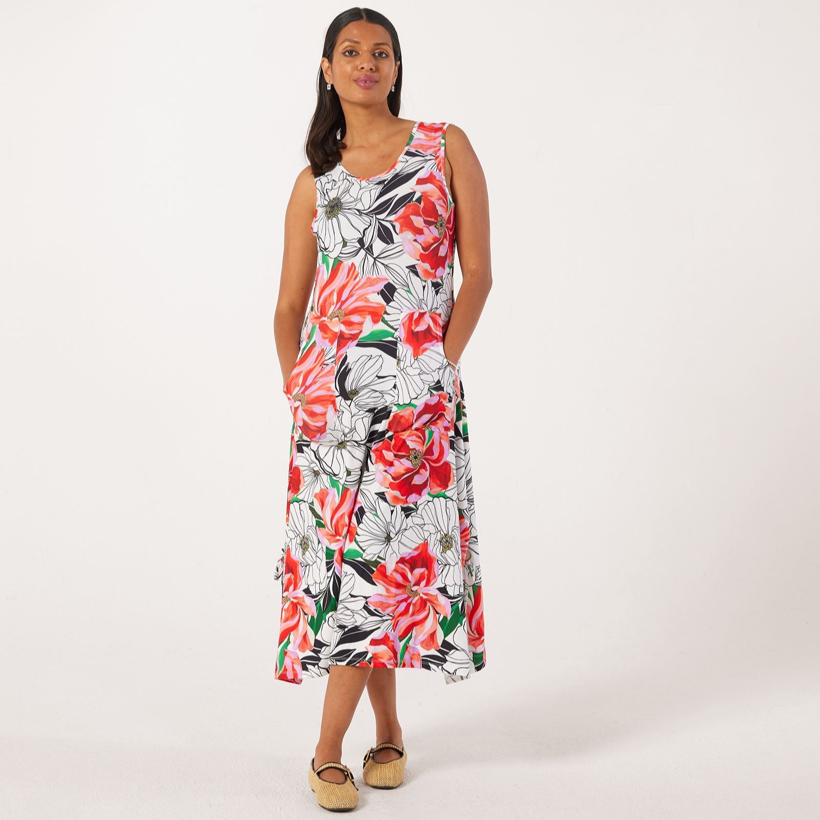 Discover effortless style with the Nina Leonard sleeveless midi dress, designed to turn heads with its charming novelty pocket and playful pleat detail at the side hems, accentuated by coconut button trim. This semi-fitted dress, with its scoop neck and midi length, is perfect for both casual outings and more formal occasions. Pair it with your favourite sandals for a relaxed daytime look or dress it up with statement jewellery for an evening affair.