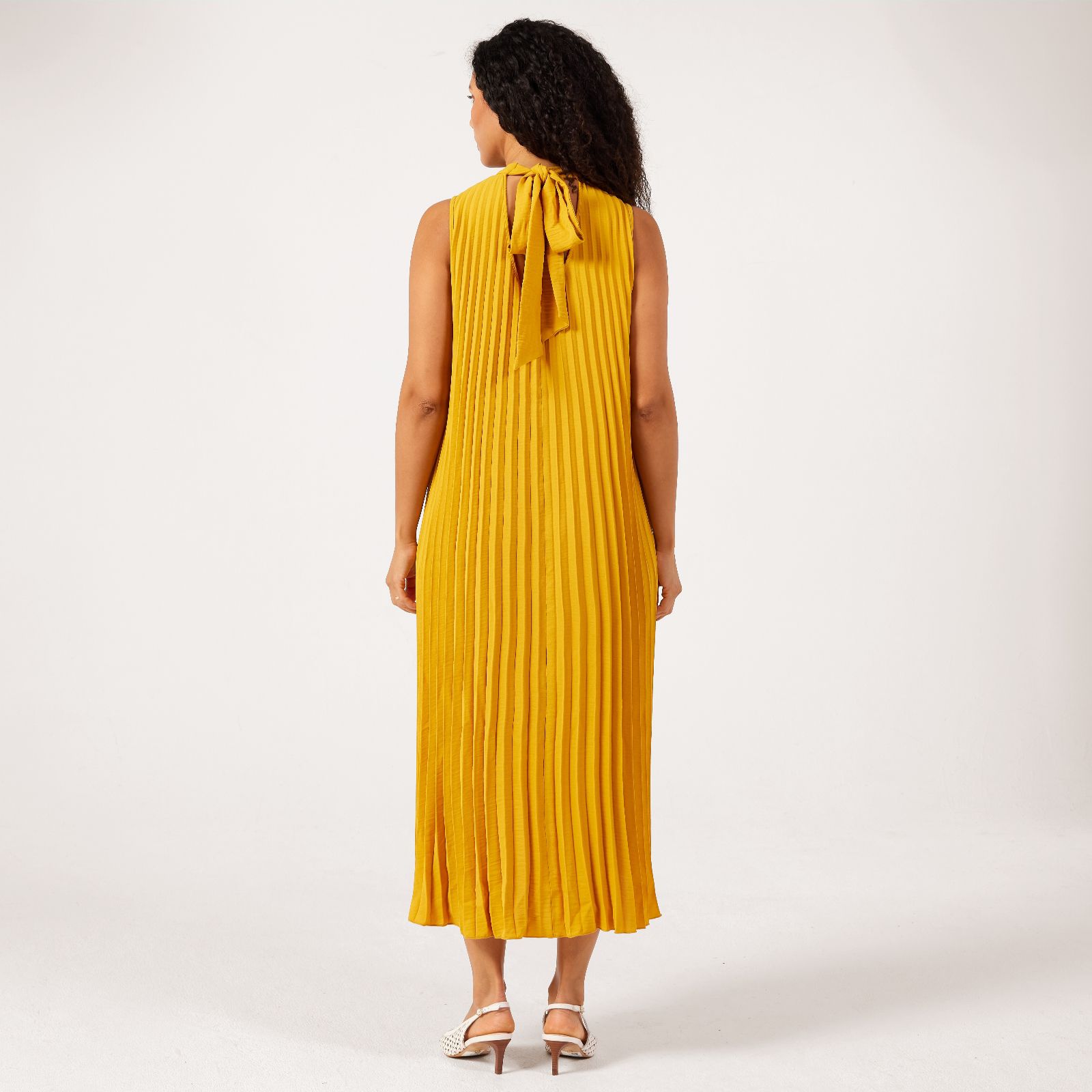 Float through any occasion in the Nina Leonard sleeveless mock neck pleated maxi dress, where elegant pleats and a chic high-low hemline deliver effortless sophistication. The relaxed fit and delicate self-tie at the back of the neck add a touch of modern grace, making this dress a go-to for everything from garden parties to evening gatherings. Style it with statement earrings and sandals for an elevated daytime ensemble.