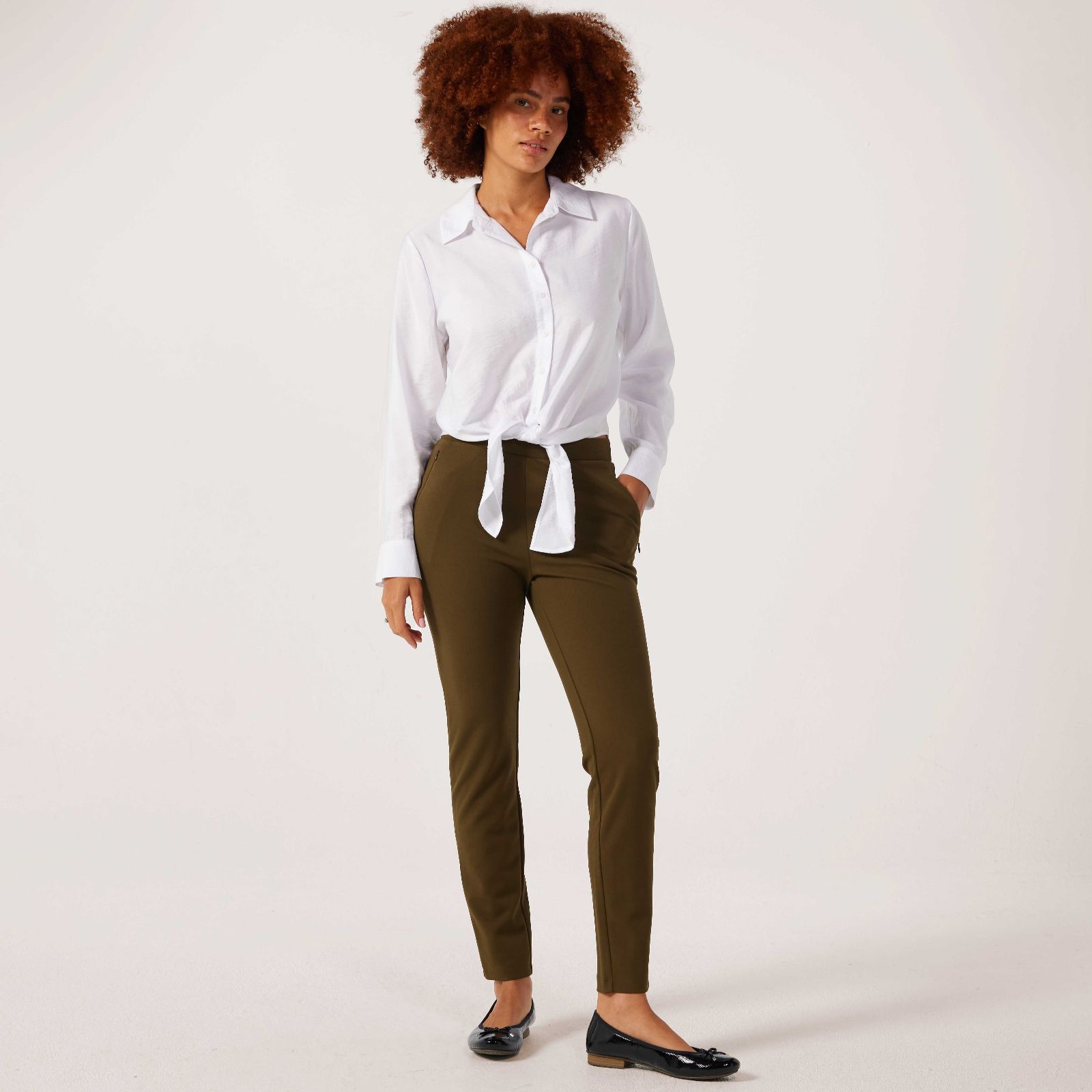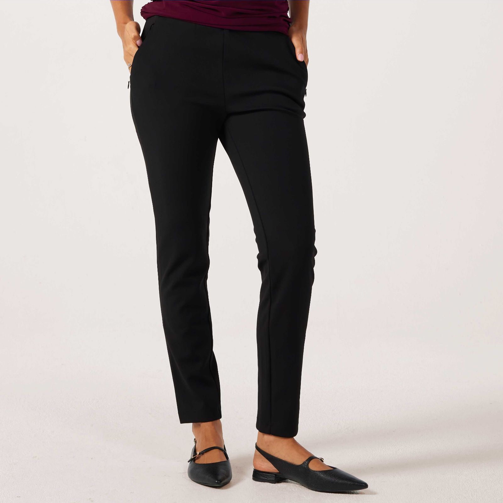 Slip into sleek style with these slim leg trousers from Nina Leonard, designed in high tech crepe for a polished, modern look. The elasticated waistband and fitted silhouette make these trousers a smart choice for busy days, whether you're at the office or heading out for dinner. For a chic finish, style these with a tailored blouse and classic loafers.