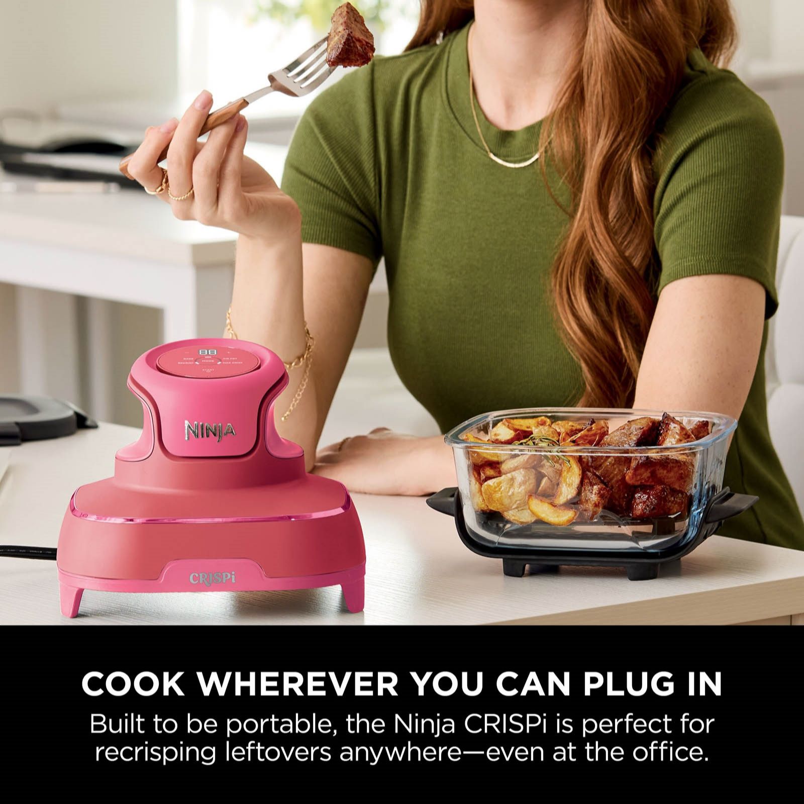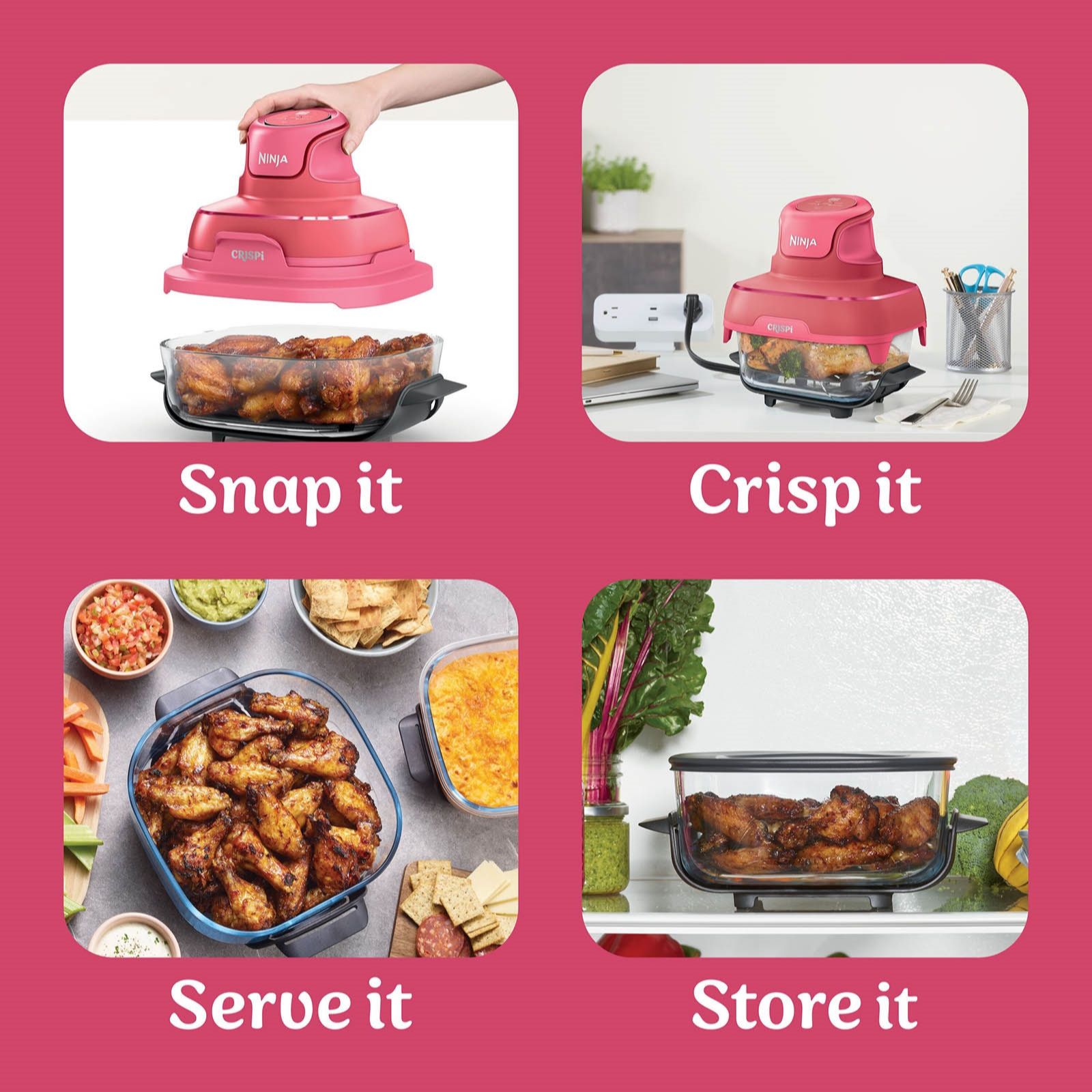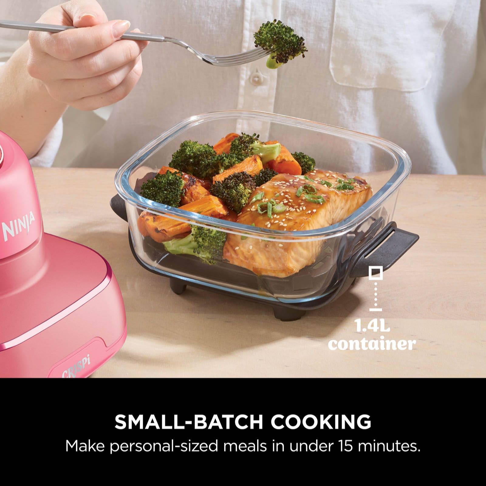 Make cooking fun with the Ninja CRISPi four-in-one portable glass air fryer, combining the power of a full-size air fryer with a compact, colourful and portable design. Simply snap the PowerPod onto one of the thermal shock-resistant glass containers to air fry, roast, keep warm or re-crisp meals. Perfect for family feasts or quick snacks, it helps reduce energy use and food waste while letting you prep, cook, serve and store all in one stylish unit.