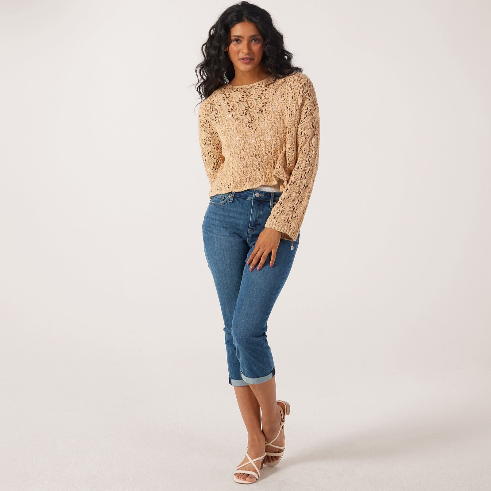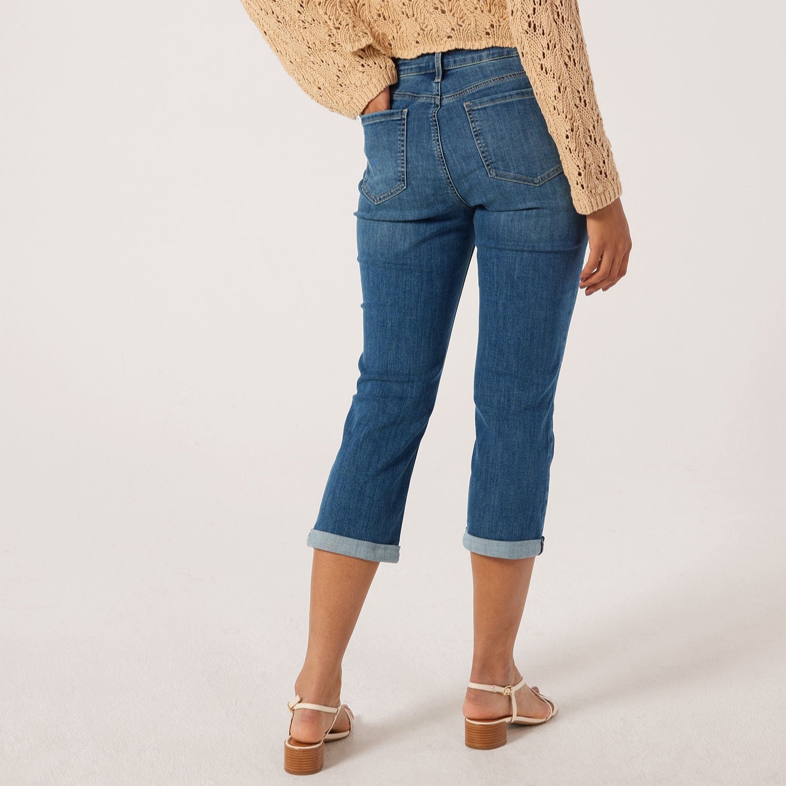 Embrace the charm of warmer days with NYDJ's Chloe Capri Cuff Detail Jeans. These capri jeans boast a slim fit and a cool capri length, making them perfect for spring and summer outings. The innovative Cool Embrace Denim ensures you stay comfortable by regulating temperature, while the Lift Tuck Technology shapes and supports your curves. Complete with five-pocket styling, a zip fly, button waist and stylish roll cuffs, these jeans effortlessly blend function and fashion. Simply pair with your favourite t-shirt and sandals.