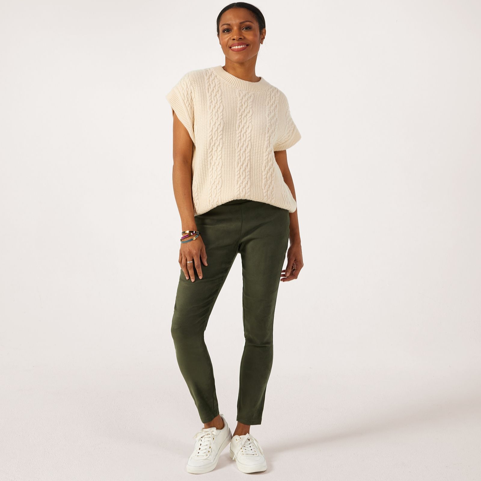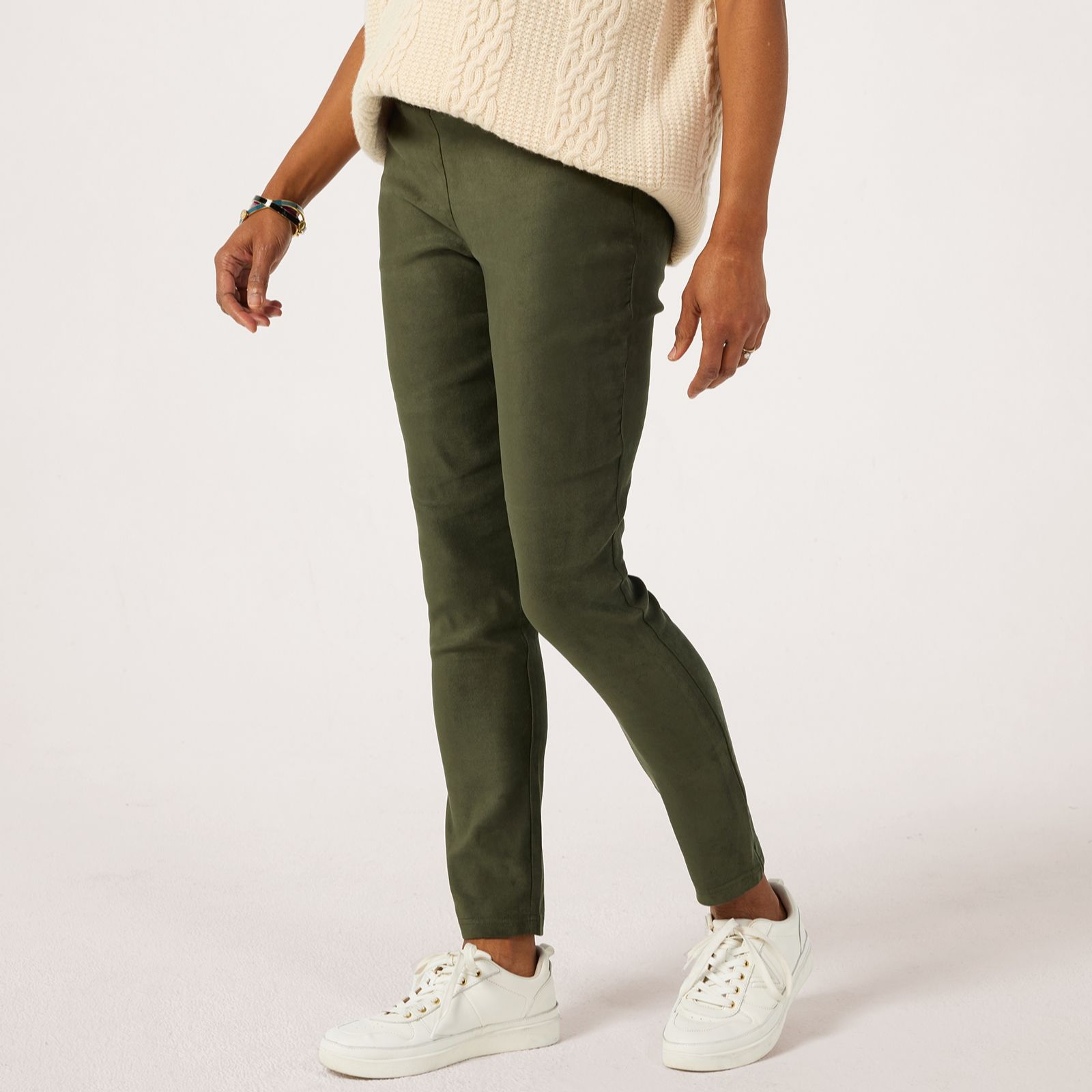 Update your wardrobe with the Faux Suede Legging from NYDJ. These leggings are the perfect foundation for countless fashionable ensembles, boasting a sleek design and incredible comfort. Thanks to the revolutionary Lift Tuck Technology, featuring a front panel with a patented criss-cross design, you'll enjoy a smoother-looking silhouette and lifted curves. The pull-on stretch waistband adds to their effortless appeal, making them an ideal choice for both casual outings and more dressed-up occasions.
