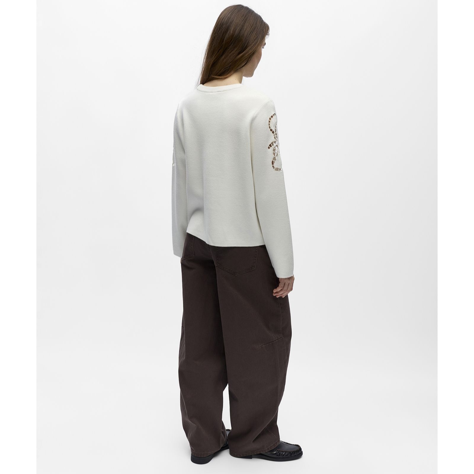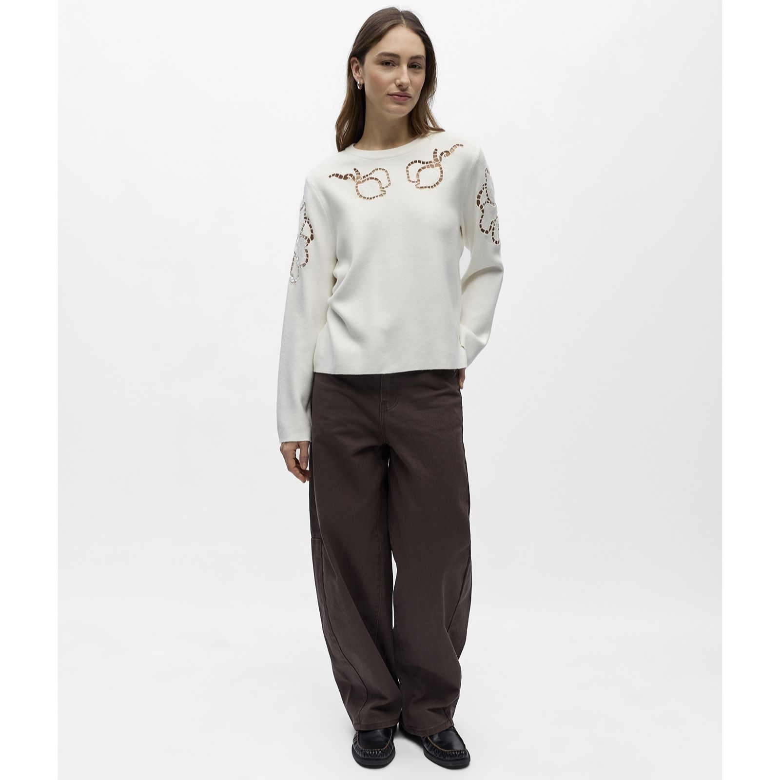Show off your personality with the Reynard cut out detail knitted jumper from Object, a loose-fit pullover that blends comfort with charm. Featuring a vertical ribbed pattern that stretches to follow your shape and intricate broderie anglaise accents, it's perfect for everything from laid-back weekends to last-minute gatherings. Pair it with jeans for casual flair or finish with a statement skirt for a chic, balanced look.
