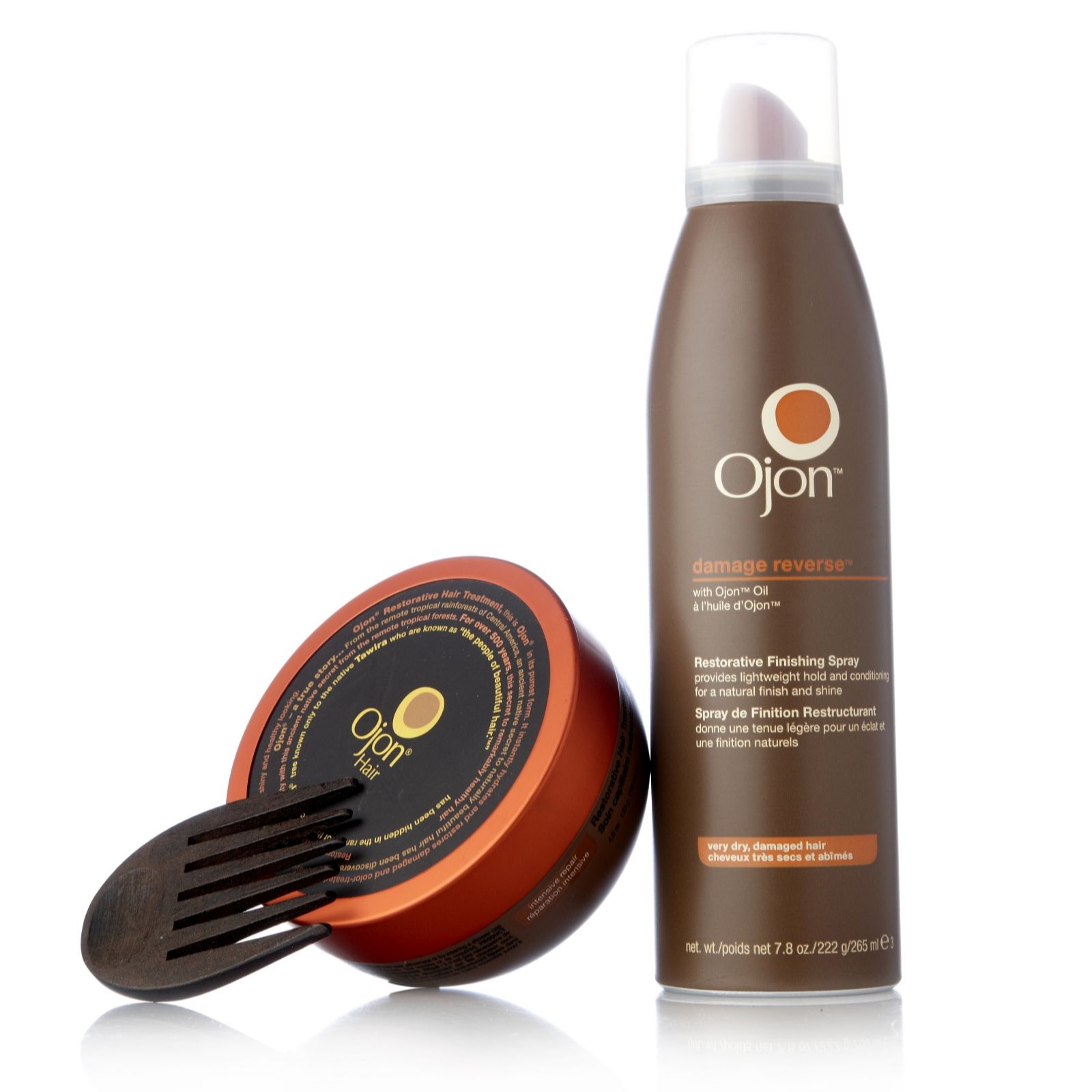Ojon two-piece Damage Reverse Restorative Hair Treatment and Finishing Spray. Features a duo of products, including an intensive hair and scalp balm and finishing spray to condition hair whilst providing lightweight hold. Pamper your hair with this grooming essential.