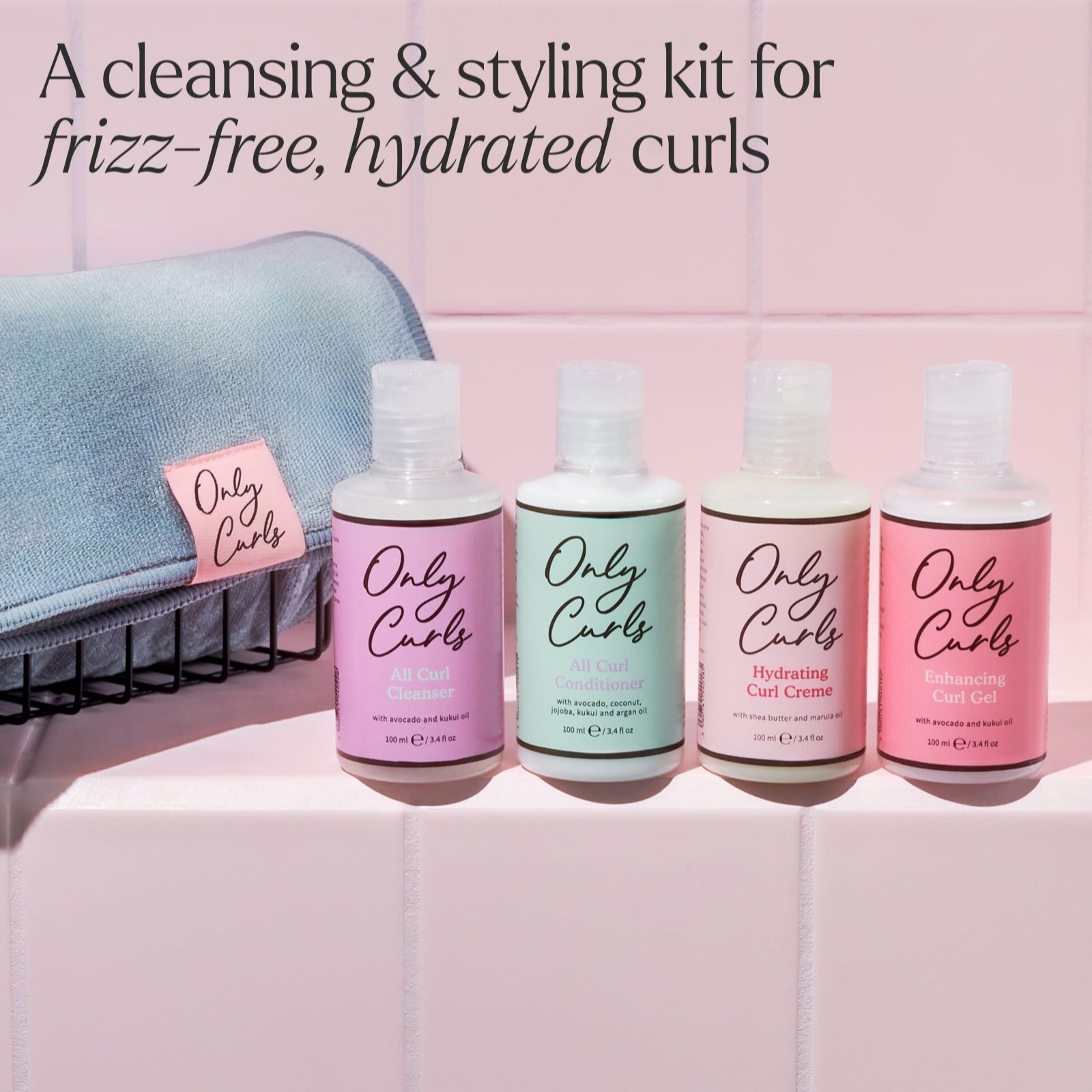Jet off in style and keep your curls looking fabulous wherever you go with the Only Curls Jet Set Curls Kit. This clever collection brings together travel-sized versions of your essential curl care products and a lightweight Microfibre Hair Turban, making it easy to help cleanse, condition, style and dry your curls for a look that's ready for any adventure.