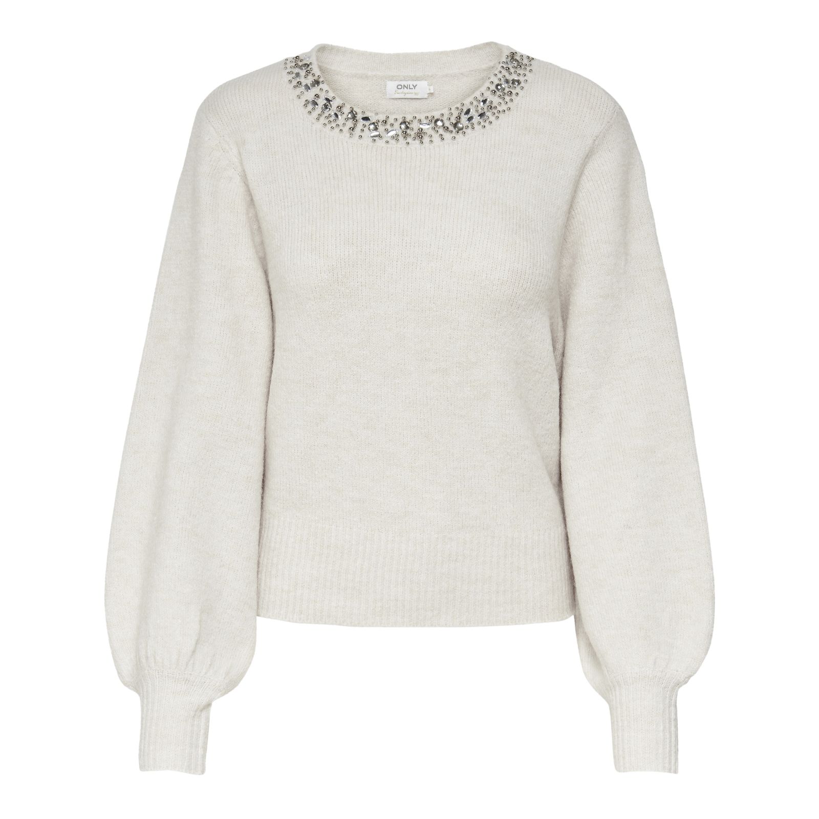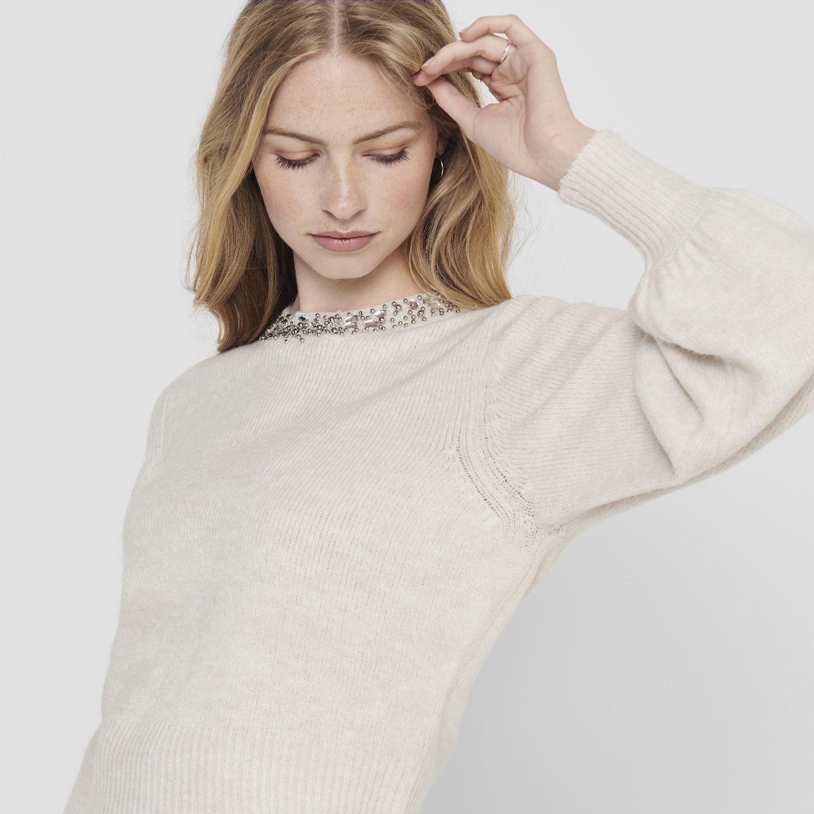 Add a touch of sparkle to your everyday style with the Elsa embellished neck jumper from Only. This knitted pullover boasts a classic round neckline and long sleeves, elevated by delicate rhinestone detailing that catches the light beautifully. Perfect for everything from coffee dates to cosy evenings in, it offers a regular fit that's effortless to wear. Pair it with tailored trousers for a chic office look or layer over a midi skirt for weekend charm.
