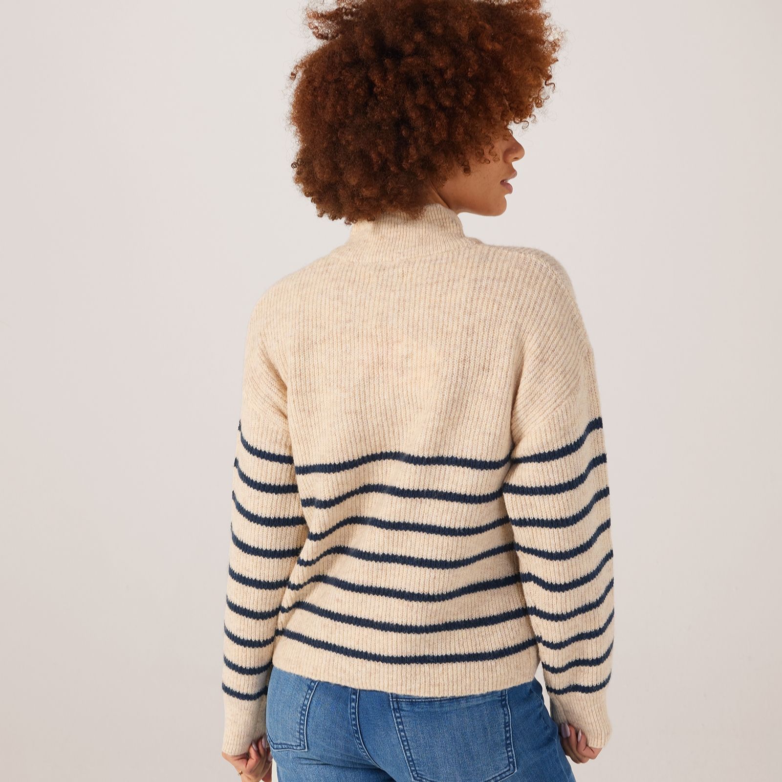 Add a touch of effortless style to your wardrobe with this high neck half zip stripe knitted jumper from ONLY. This jumper offers a regular fit and features a chic high neck and long sleeves, perfect for keeping warm and stylish. Crafted from a wool blend with a hint of elastane, it promises both exceptional comfort and warmth. Ideal for casual outings or cosy days at home, this versatile piece can be paired with your favourite jeans or layered over a dress for an elevated look.