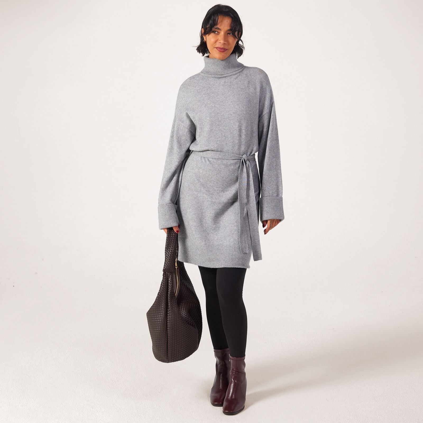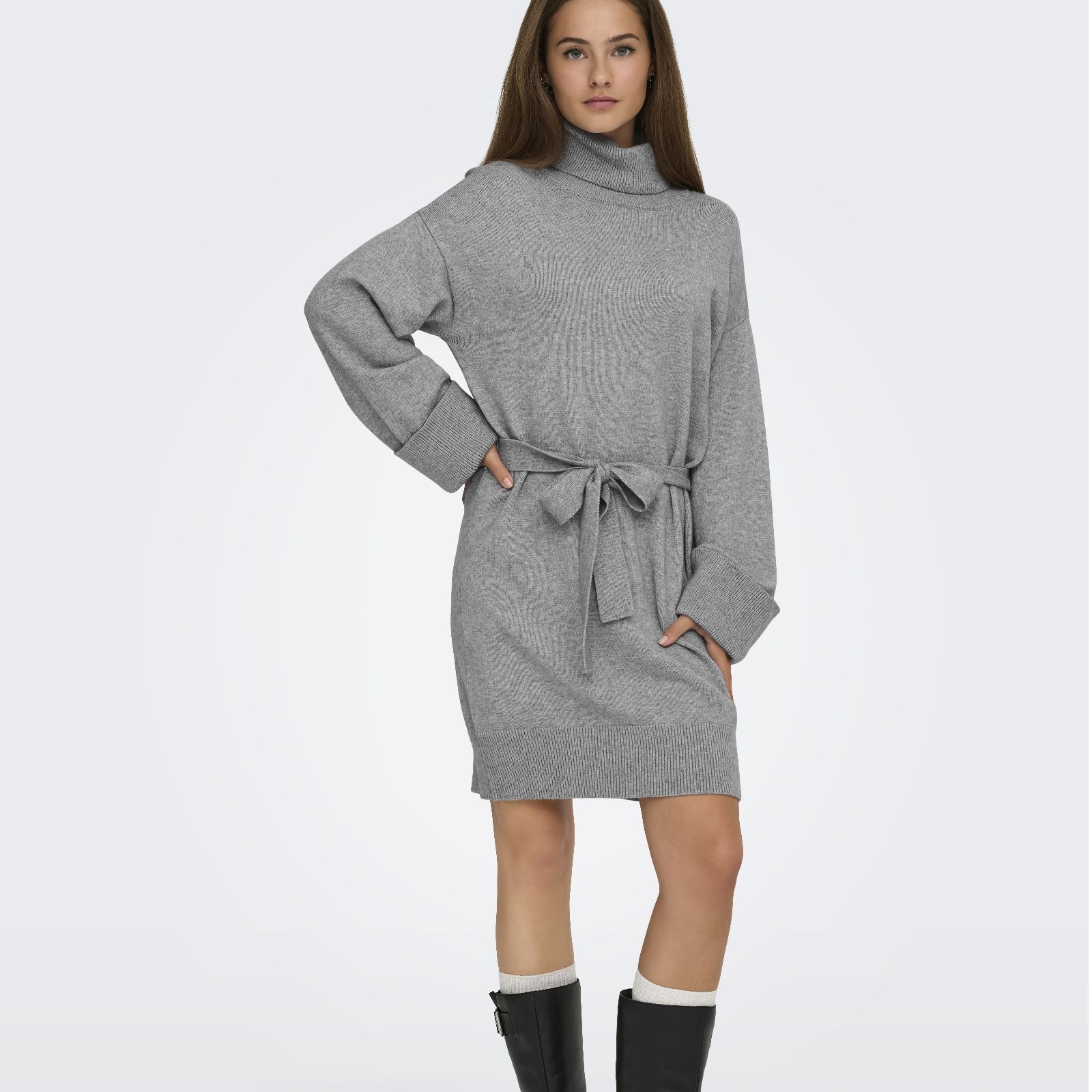 Wrap yourself in effortless style with the Monica belted knit midi dress from Only, a chic grey design crafted with a flattering roll neck and ribbed cuffs for added comfort. Perfect for chilly days, this versatile dress transitions seamlessly from work to weekend, whether layered over tights or paired with jeans for a relaxed look. Try cinching the waist with the coordinating belt and adding ankle boots for an easy, on-trend ensemble.