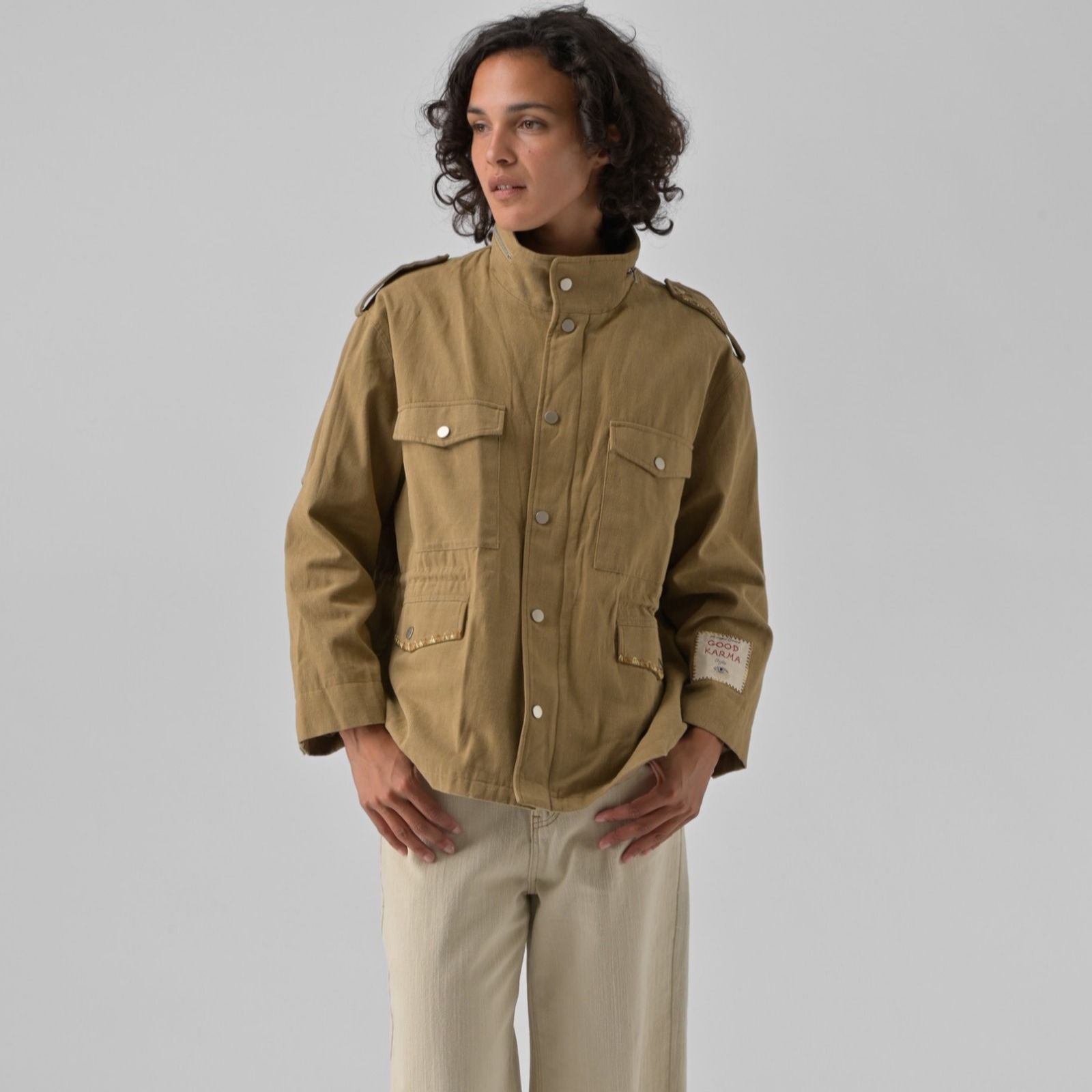 Style meets utility in the Orfeo Paris Alister long-sleeved jacket, crafted with a relaxed silhouette and distinctive detailing that brings a fresh twist to the classic military-inspired design. Perfect for everything from casual city strolls to weekend getaways, its structured shape and practical pockets make it a versatile wardrobe staple. Try pairing it with denim and trainers for laid-back days or layer it over a dress for an effortlessly chic edge.