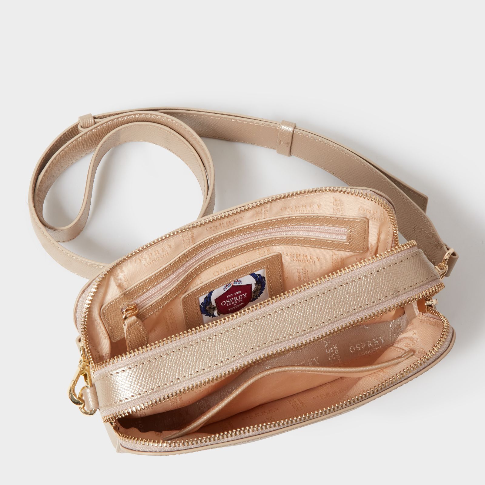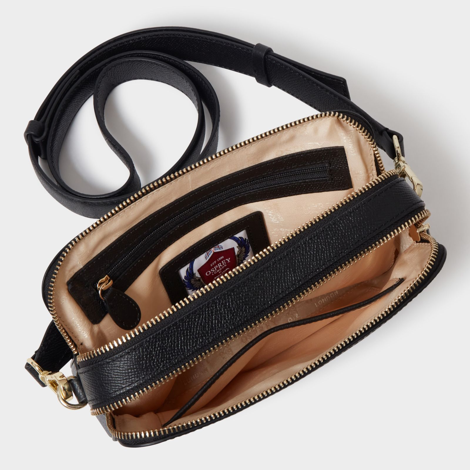 Introduce a touch of sophistication to your wardrobe with the Osprey London Poppy cross-body bag. This elegant accessory combines sleek flat sides with gently rounded corners, creating a refined silhouette perfect for any occasion. Crafted from grainy leather and featuring pale gold metal hardware, it offers practical functionality with a generous reverse slip pocket and intelligently divided interior for easy organisation. Whether worn across the body or on the shoulder, the adjustable strap ensures versatile wear for the modern urban explorer.