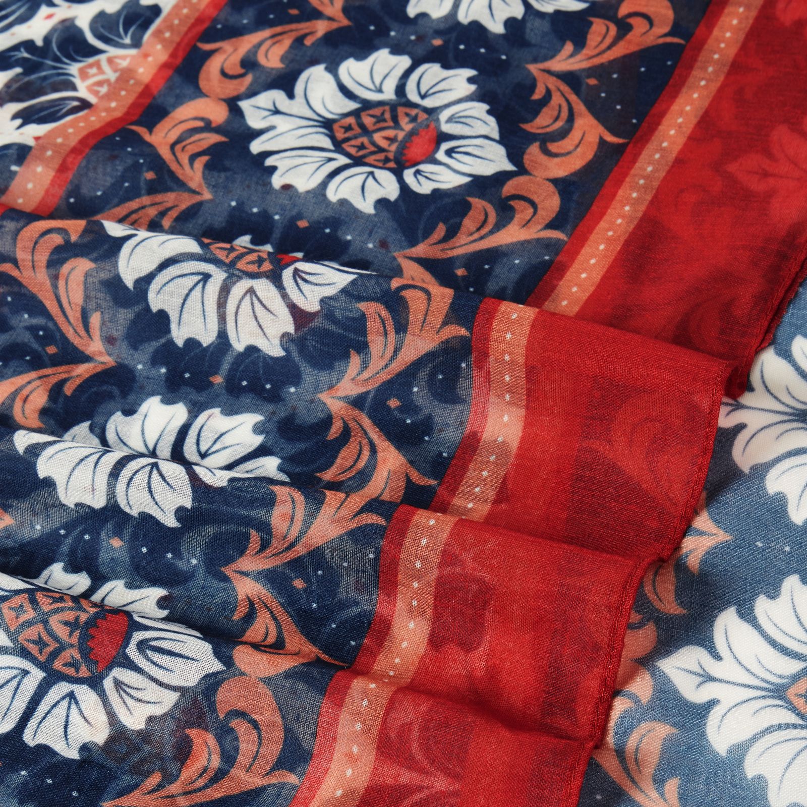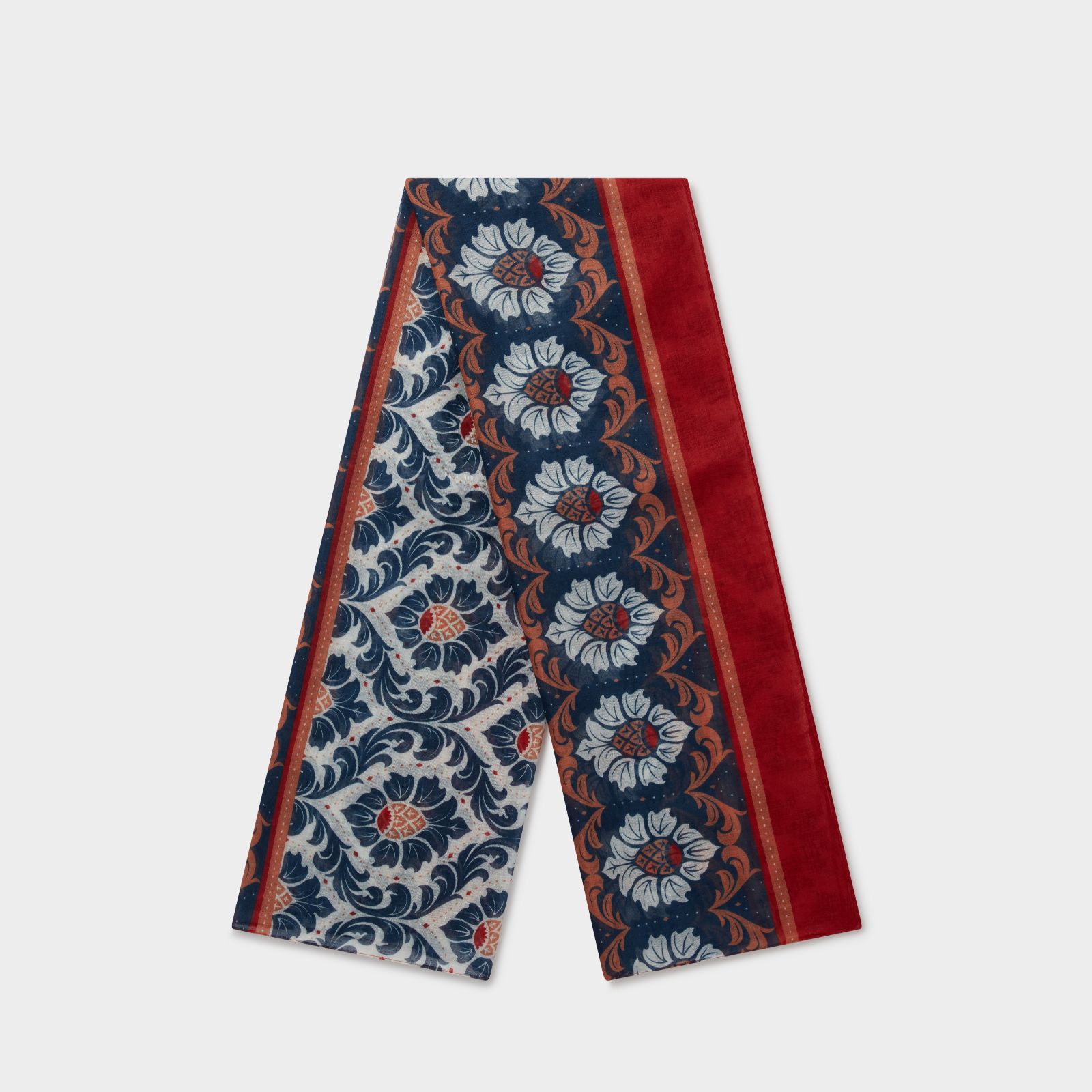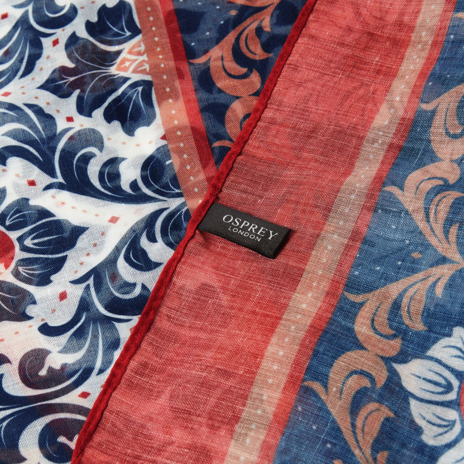 Add a touch of timeless elegance to your look with the Rosewood Garden boxed scarf from OSPREY LONDON, showcasing a vintage ornamental floral design in navy, red and white. Perfect for adding a splash of colour to both casual and formal outfits, its generous size makes it ideal for year-round styling. Drape it over your shoulders for a chic layer or knot it neatly at the neck to complement a tailored coat or blazer.