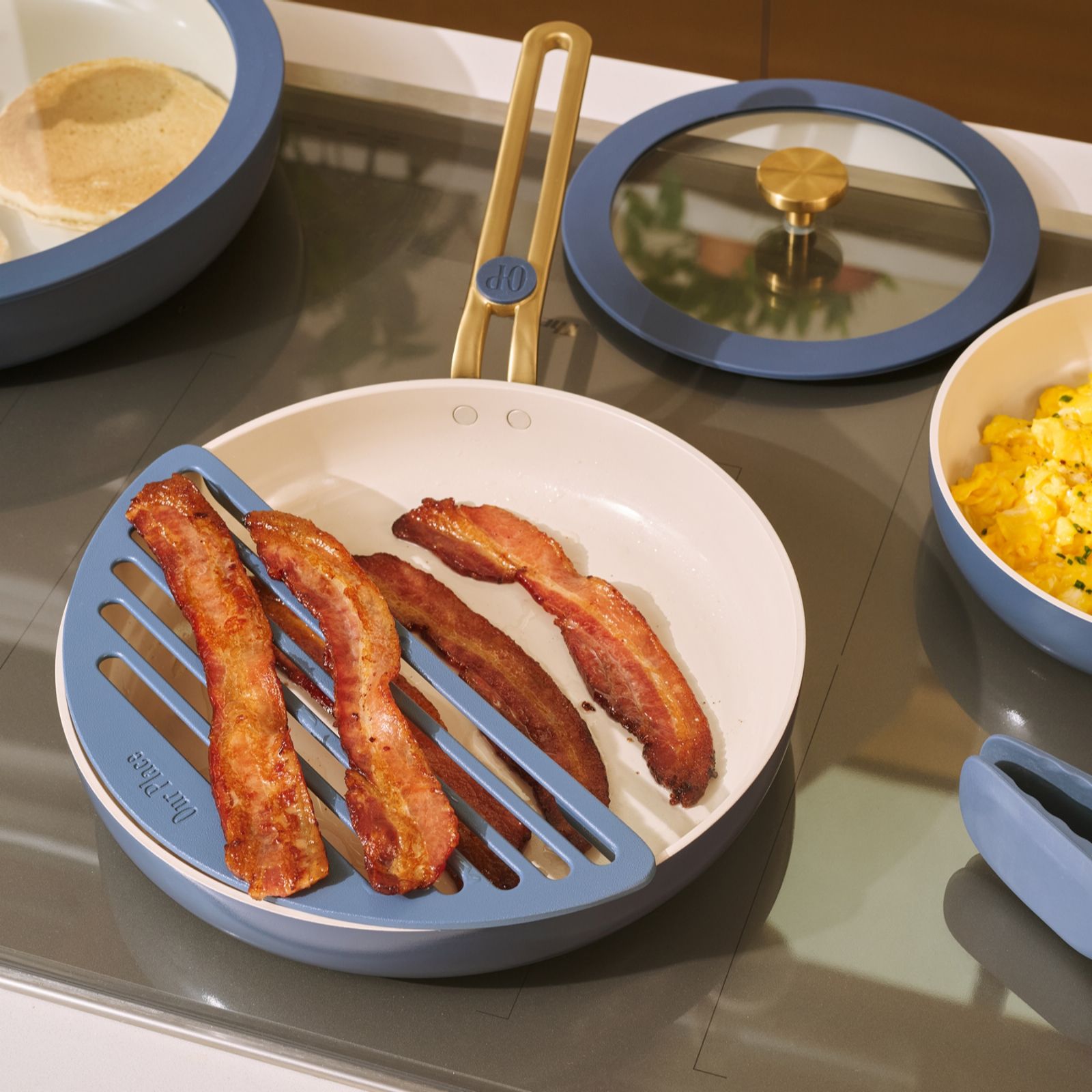 Dry your fried favourites to crispy perfection with the Fry Deck from Our Place, designed to fit seamlessly onto your Always Pan or Perfect Pot. This clever cast aluminium add-on lets excess oil drip straight back into the pan, keeping your food warm and your stovetop tidy. Ideal for everything from tempura to fritters, it makes frying easier, far less messy - no more oily paper towels or greasy plates.