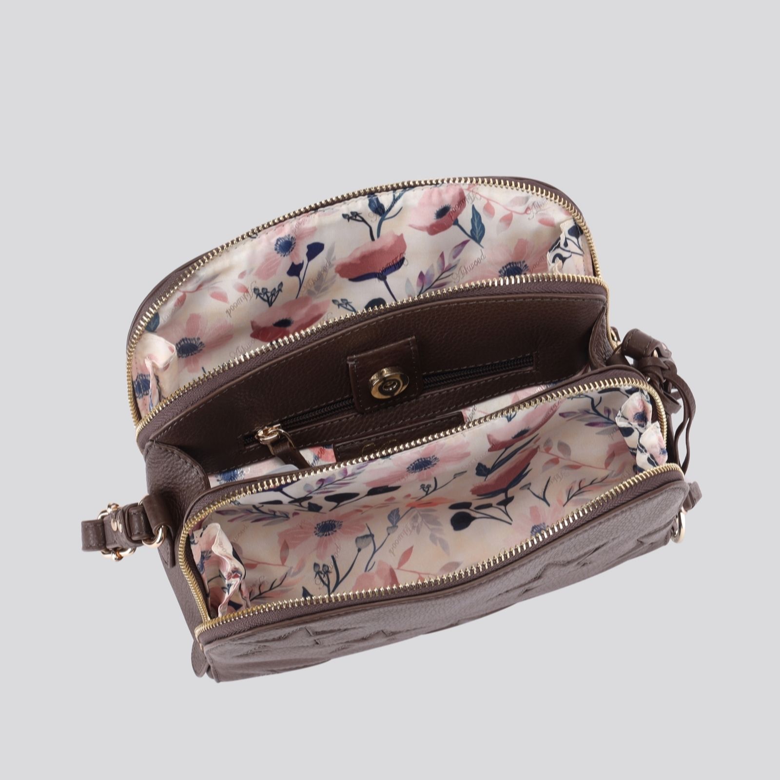 - Adjustable cross-body leather strap