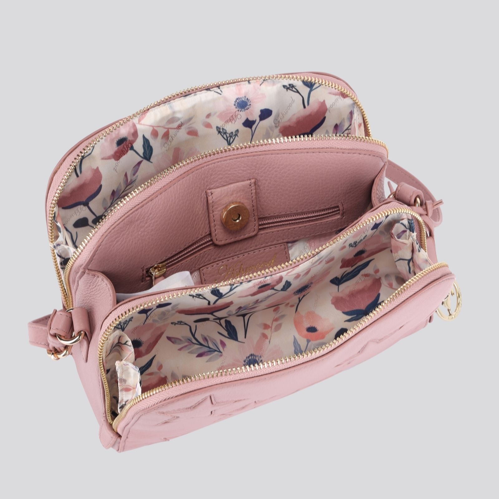 Stand out like a star with Ashwood's triple-compartment camera bag, where playful star detailing and a luxurious floral jacquard lining add a dash of personality to your everyday look. Thoughtfully designed with three spacious sections and an adjustable cross-body leather strap, this bag keeps essentials organised whether you're heading to brunch, commuting or exploring the city in style.