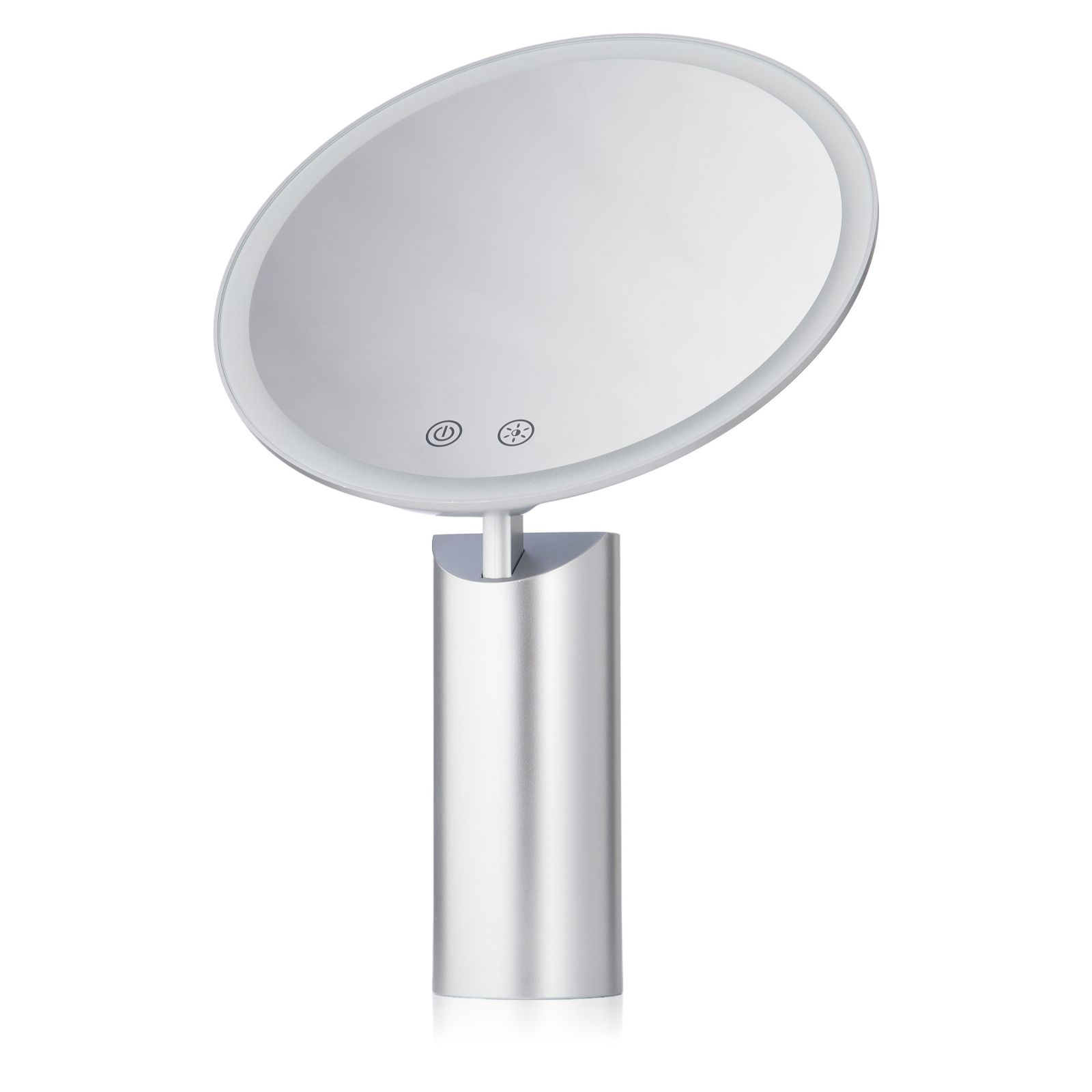 - the mirror is wireless and has a rechargeable integral battery, so it can be easily moved around your home, whether you're doing your hair in the bedroom, or your make-up in the kitchen! It also has a suction base that's easy to secure to any smooth flat tabletop, keeping it in place as you use.