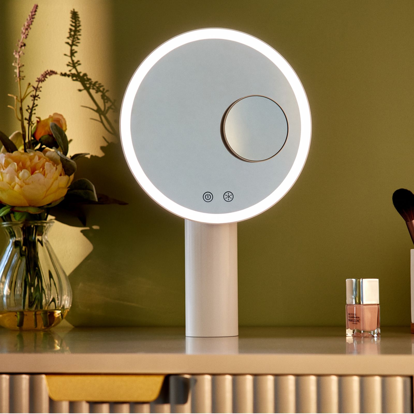 - choose from white, warm white and natural white lighting modes to check that your look is just as flawless in any lighting - day or night, inside or outside. Plus, you can adjust the brightness too.