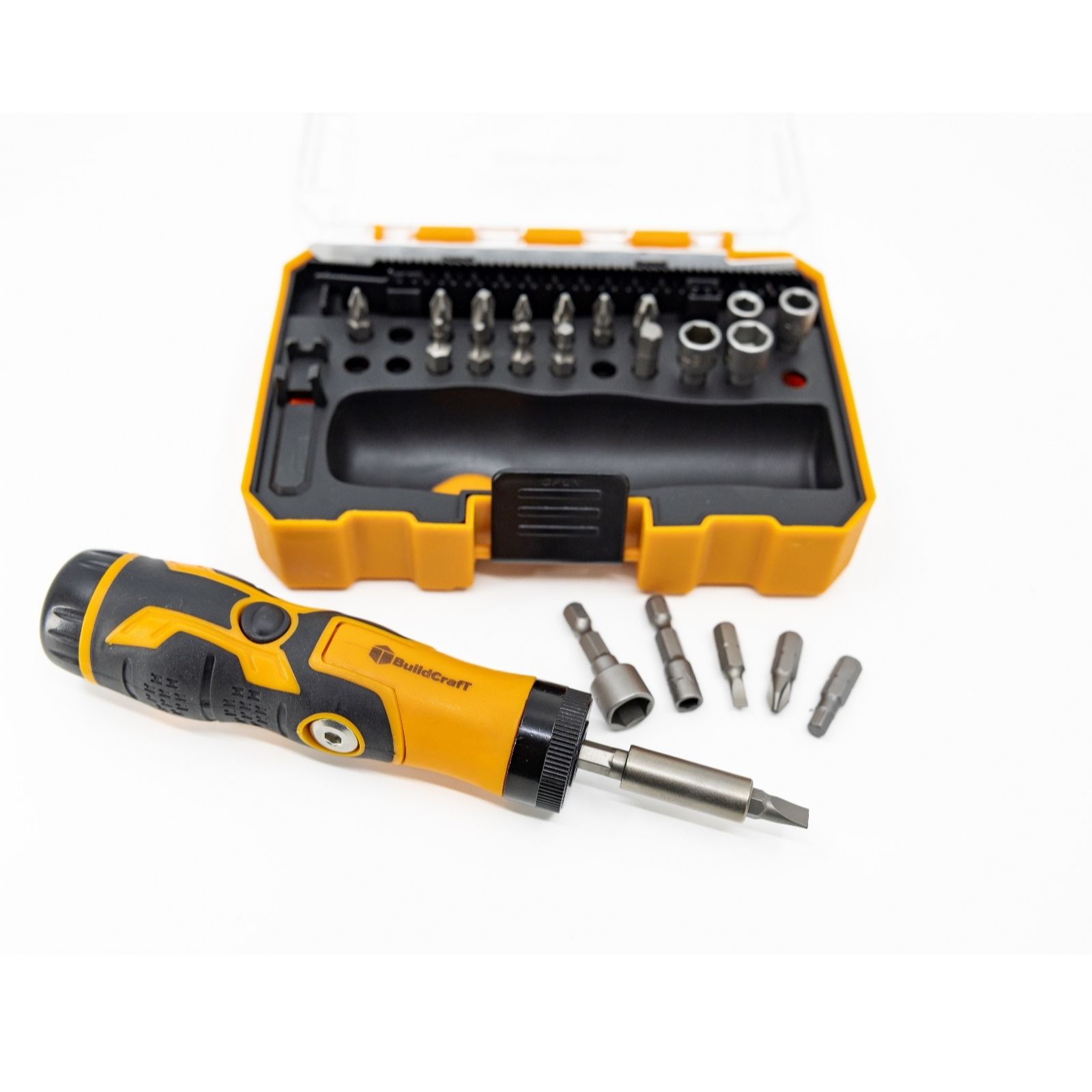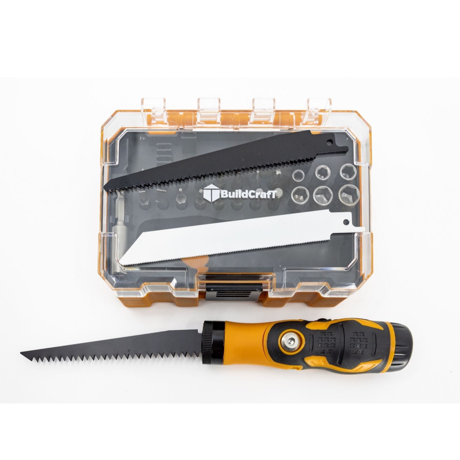 Enhance your DIY projects with the Buildcraft 33-piece multi-function screwdriver & saw set. This versatile set features a range of high-quality bits, including CRV power nuts and saw blades made from 65Mn and BIM materials, all designed for durability and precision. The multi-function handle, crafted from PP TPR, ensures a comfortable grip, while the ABS base and PC lid case keep everything organised. Perfect for home repairs or crafting, this set is a must-have for any DIY enthusiast.