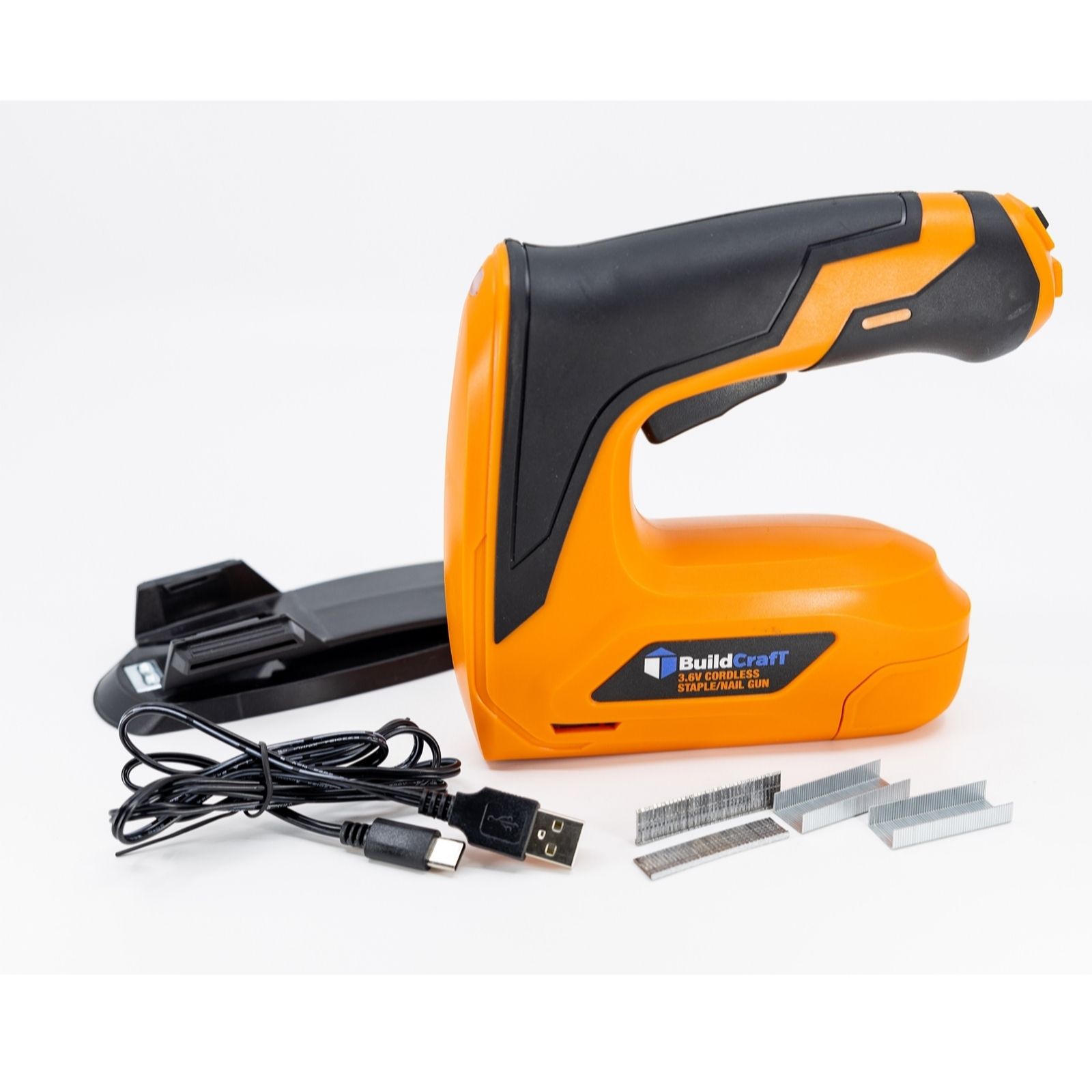 Bolster your DIY toolkit with the Buildcraft 4V Rechargeable Stapler with Nails & Staples Accessory Kit. This versatile toolis designed for convenience and efficiency, featuring a powerful 4V motor and a rechargeable 1500mAh battery. Ideal for various home projects, it boasts an impact rate of 30 per minute and a magazine capacity of 100 nails. Whether you're securing upholstery or completing light construction tasks, this stapler is your go-to solution.