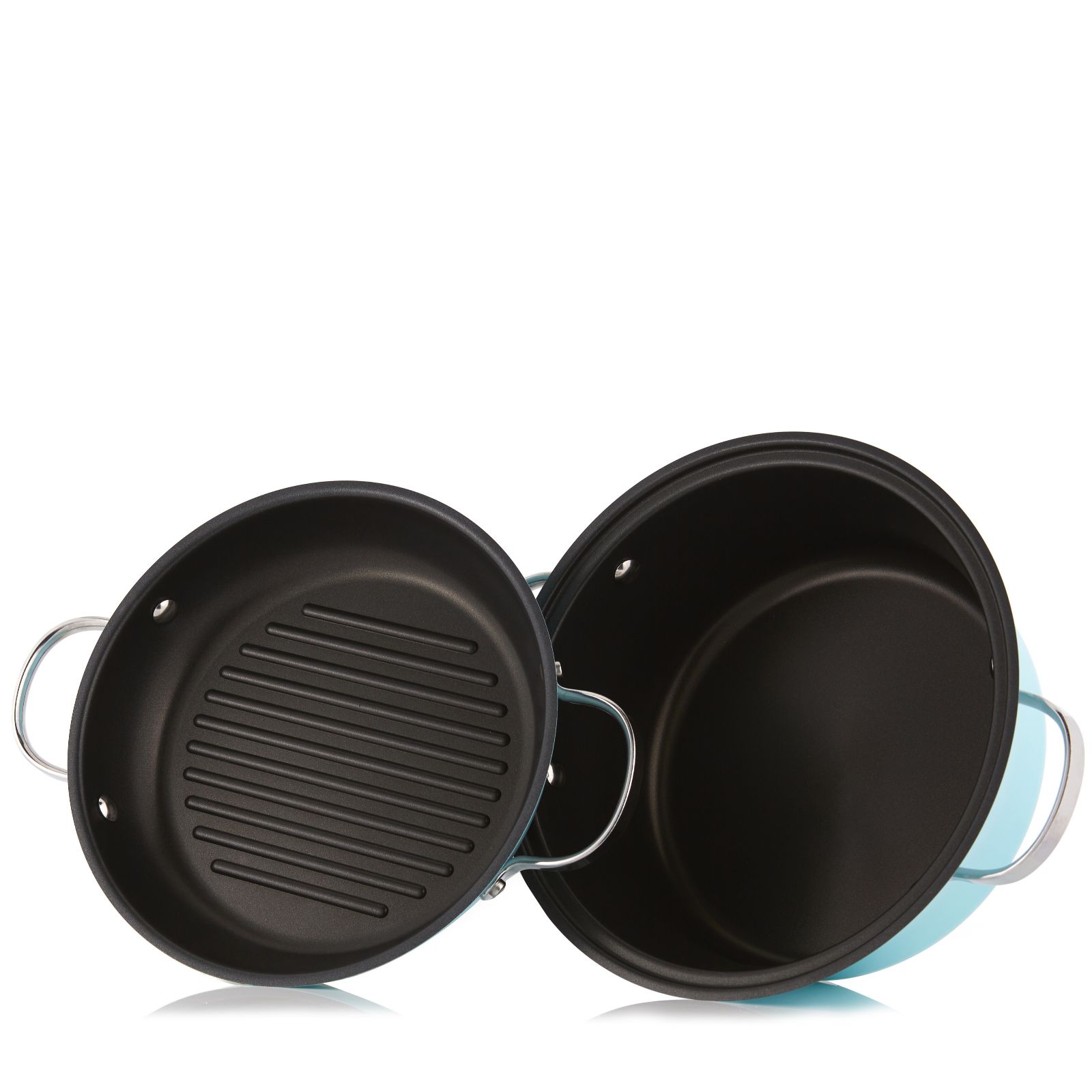 - with three colour options to choose from, there's a multi-functional cooker pan set to suit any kitchen. Will you go for the shine of Stainless Steel, the simplicity of Black, or the lightness of Pastel Blue?